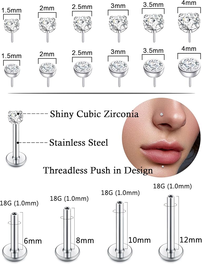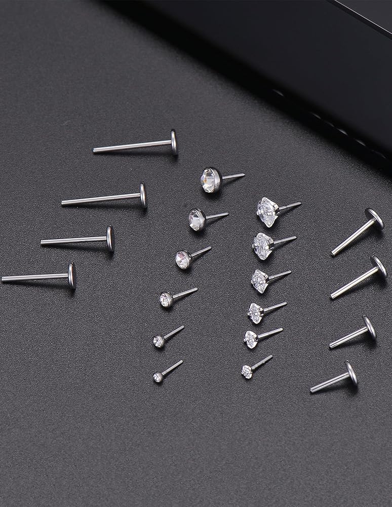 【أزرار حلقات الشفاه】سوف تحصل على 20 قطعة من مجوهرات ثقب الشفاه بدون خيوط، بما في ذلك 12 قطعة من الجزء العلوي من تشيكوسلوفاكيا (1.5 مم/2 مم/2.5 مم/3 مم/3.5 مم/4 مم) + 8 قطع شريط مستقيم (6 مم/8 مم/10 مم/12 مم)، مع خيارات واسعة لتناسب احتياجاتك المختلفة
