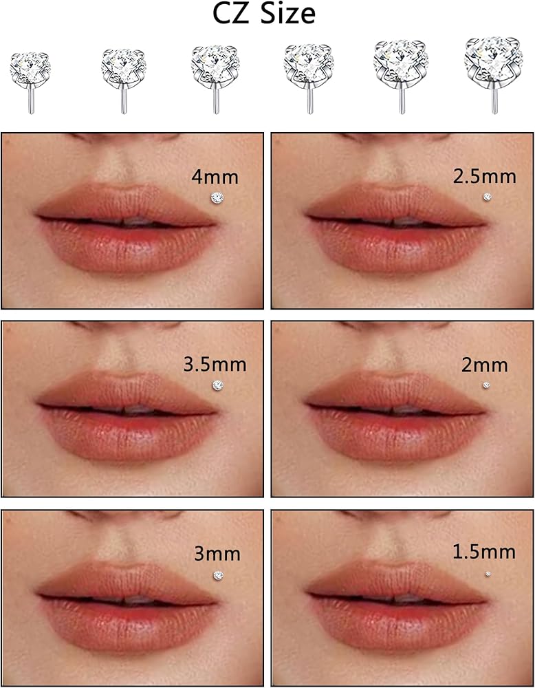 【حجم مختلف】حجم المقياس: 18 جرام، طول الشريط: 6 مم/8 مم/10 مم/12 مم، القطر العلوي للزركونيا: 1.5 مم/2 مم/2.5 مم/3 مم/3.5 مم/4 مم، اللون: فضي، مقاسات مختلفة يمكن أن تتطابق مع اختلافات مختلفة. ملابس يومية
