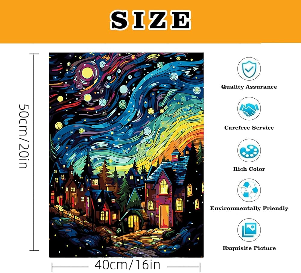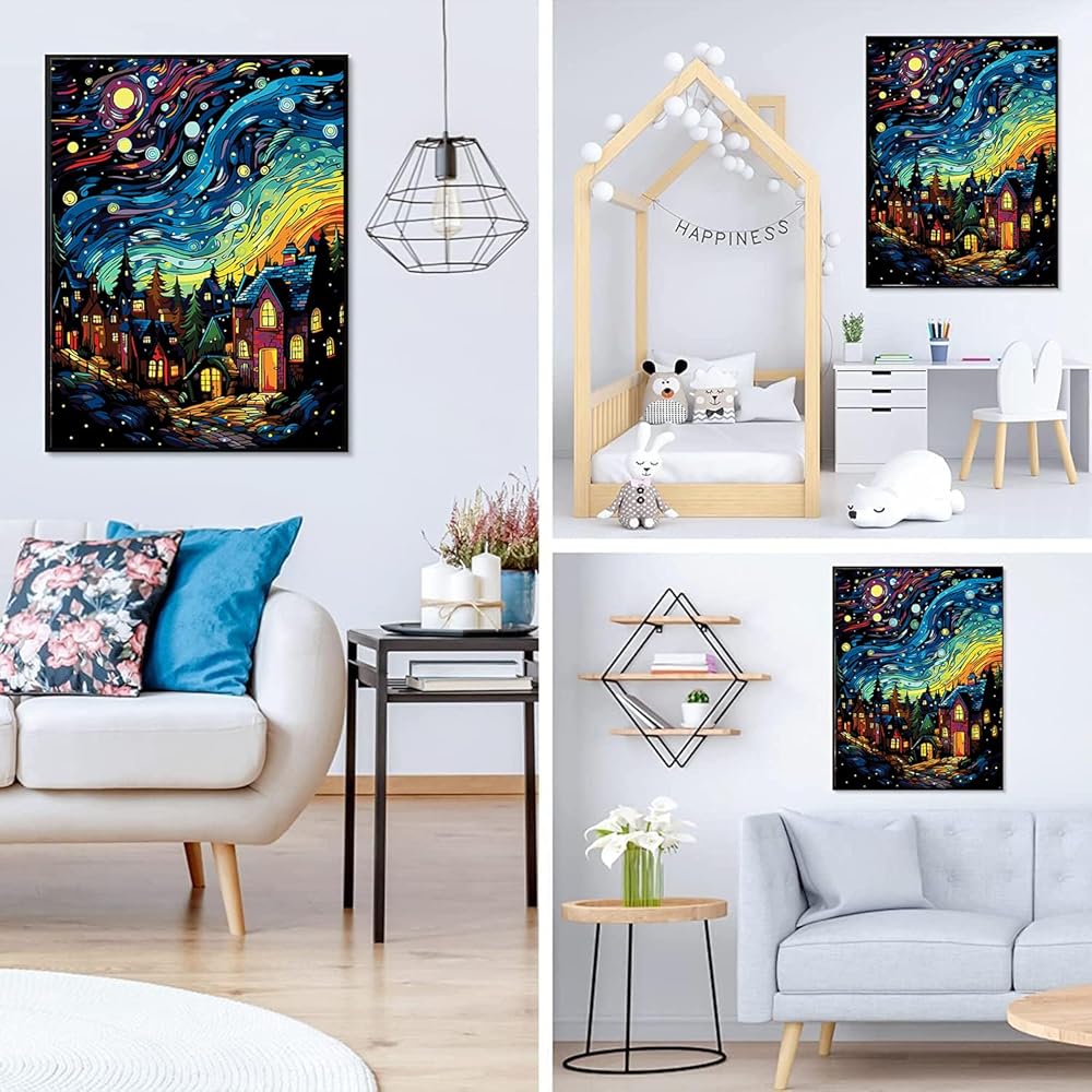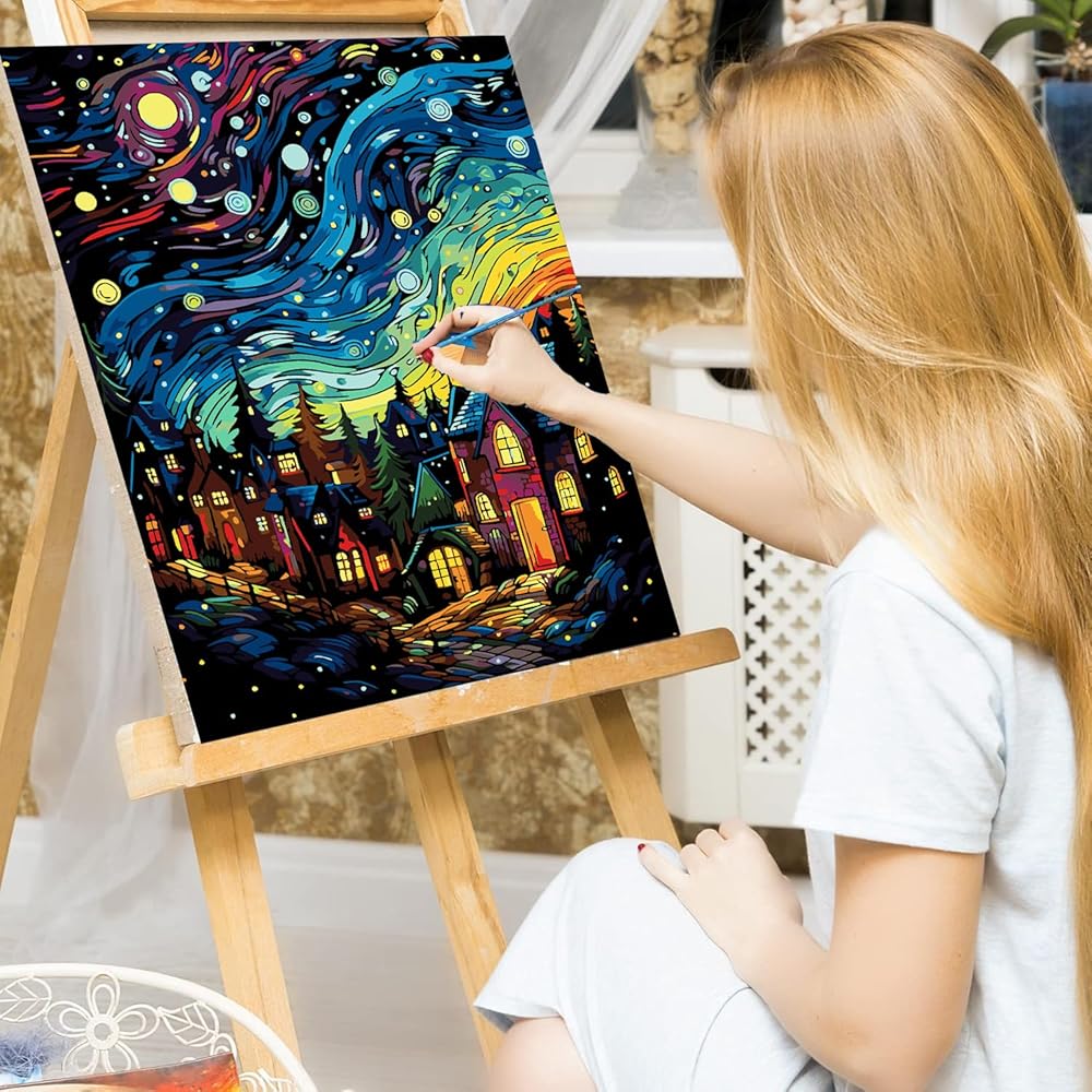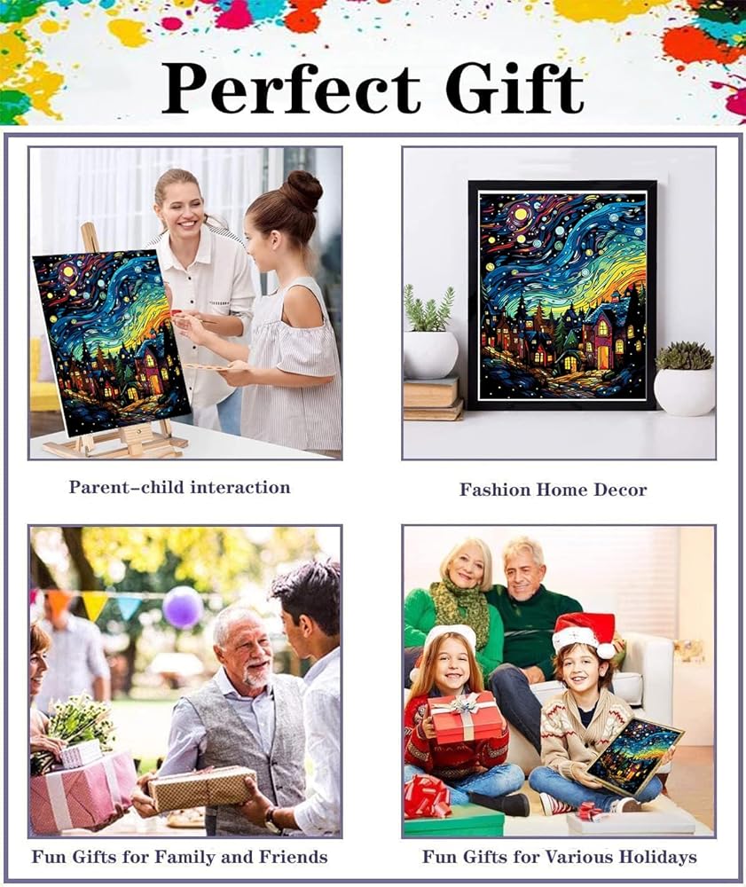 زيثرون الكبار الطلاء بالأرقام، السماء المرصعة بالنجوم الطلاء حسب الأرقام مجموعات للبالغين المبتدئين على قماش بدون إطار، ليلة مرصعة بالنجوم DIY مشهد زيتي الطلاء بالأرقام اللوحة هدية ديكور المنزل 16 × 20 بوصة