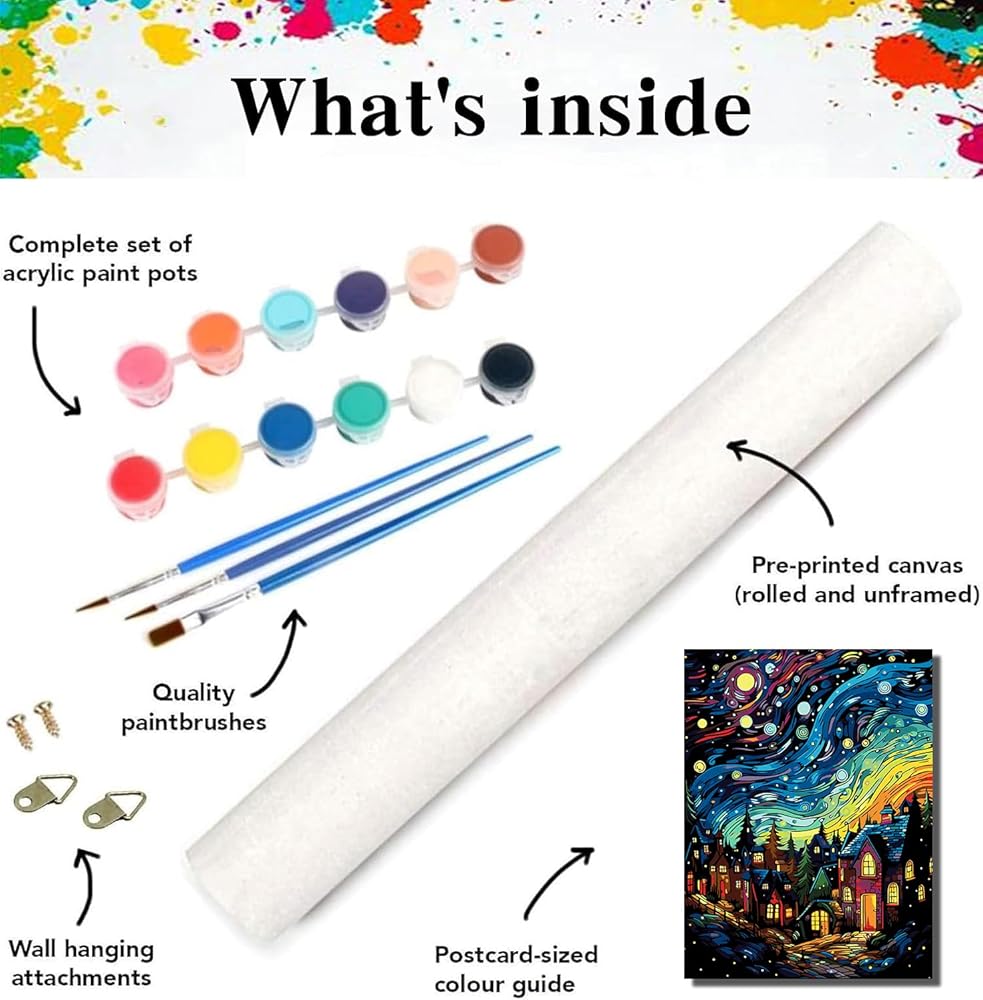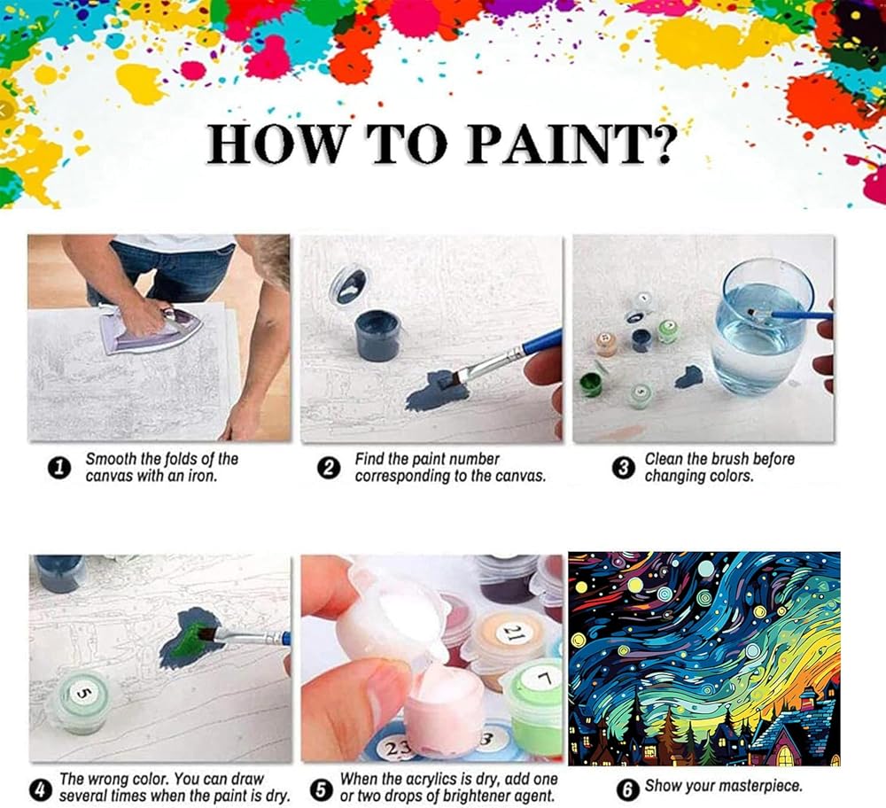 • 【ما ستحصل عليه】سوف تحصل على مجموعة طلاء بالأرقام تتضمن قماشًا مطبوعًا بدقة عالية × 1، وفرش مختلفة الحجم × 3، ومجموعة طلاء أكريليك واسعة × 1، وخطاف × 1، وسوف نقدم لك كل ما تحتاجه للطلاء .