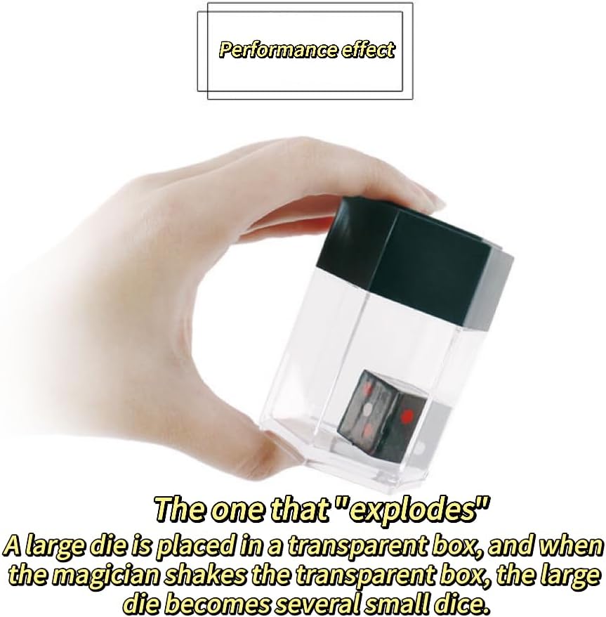 High-Quality Materials: Made from durable and transparent materials, our Explosion Dice Magic Prop ensures a long-lasting performance. The transparent box allows for easy visibility, enhancing the overall visual impact of the trick.