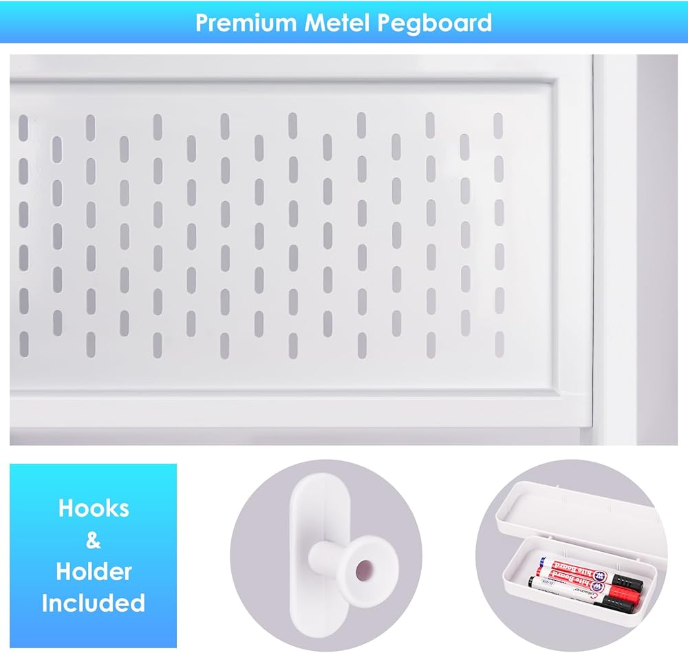 تحسين استخدام المساحة: قم بزيادة مساحة العمل الخاصة بك إلى أقصى حد باستخدام لوحة المشابك المتضمنة مقاس 47.2 × 8.7 بوصة، والتي تأتي مع خطافين وصينيتين لتنظيم فعال. احتفظ بملحقاتك ومعداتك معلقة بشكل أنيق ويمكن الوصول إليها بسهولة، مما يحول الفوضى إلى بيئة نظيفة ومنظمة تعمل على تحسين الإنتاجية والإبداع.