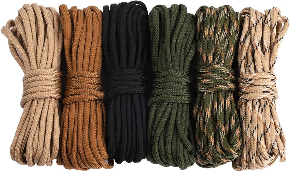 【مظلة عالية الجودة】- حبل مظلة من النوع الثالث التجاري مصنوع من النايلون عالي القوة والمتين والقوي. إنها 7 خيوط داخلية محاطة بغطاء من النايلون بقوة كسر تصل إلى 550 رطل. مثالية للحرف اليدوية أو التخييم أو التنزه أو الاحتياجات العسكرية أو البقاء على قيد الحياة أو مجموعات الطوارئ أو أي مغامرة في الهواء الطلق.