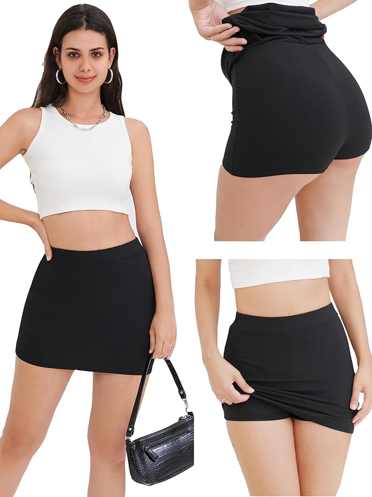 مناسبة متعددة الاستخدامات: تنورة y2k مع شورت تحت التنورة للسيدات، تصميم بسيط وأنيق، رائع للارتداء اليومي الكاجوال، ملابس الشارع، الخروج، النادي، الخروج، المواعدة، الاسترخاء، السفر، العطلات، إلخ. تنورة قصيرة سوداء رياضية مع السراويل القصيرة والتنانير القصيرة