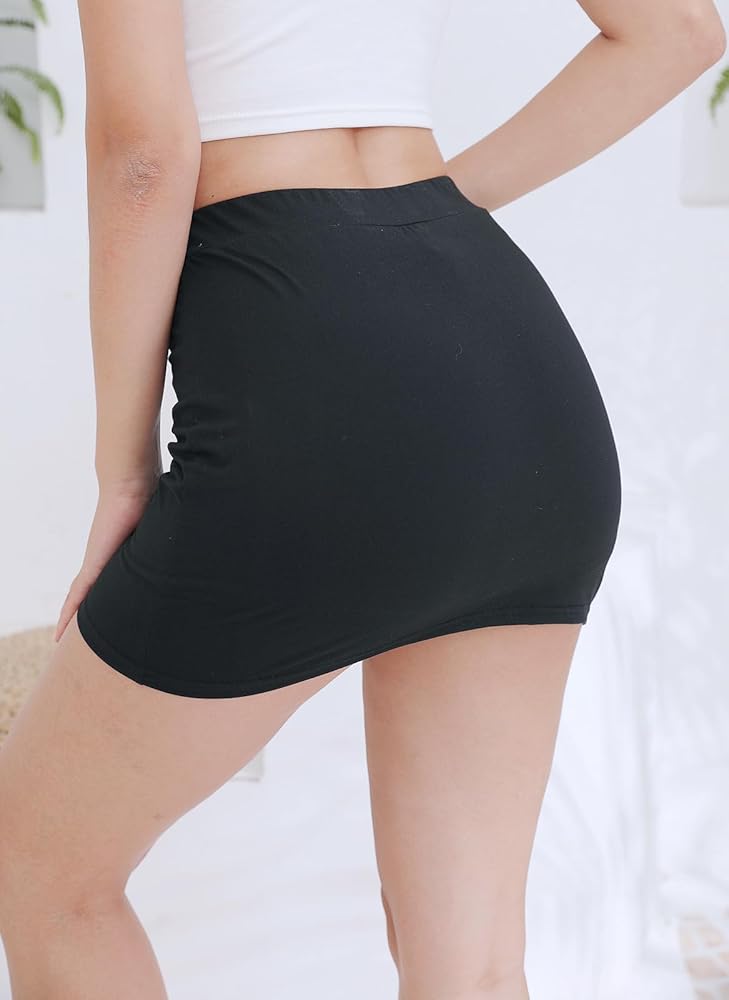 المطابقة: تنورة قصيرة سوداء مع شورت هي تنورة لطيفة جدًا وناعمة جدًا ومريحة. إنه قابل للتمدد، وهذا ينطبق في الواقع على المقاس من خلال الخصر والوركين. وارتدائه بعدة طرق.