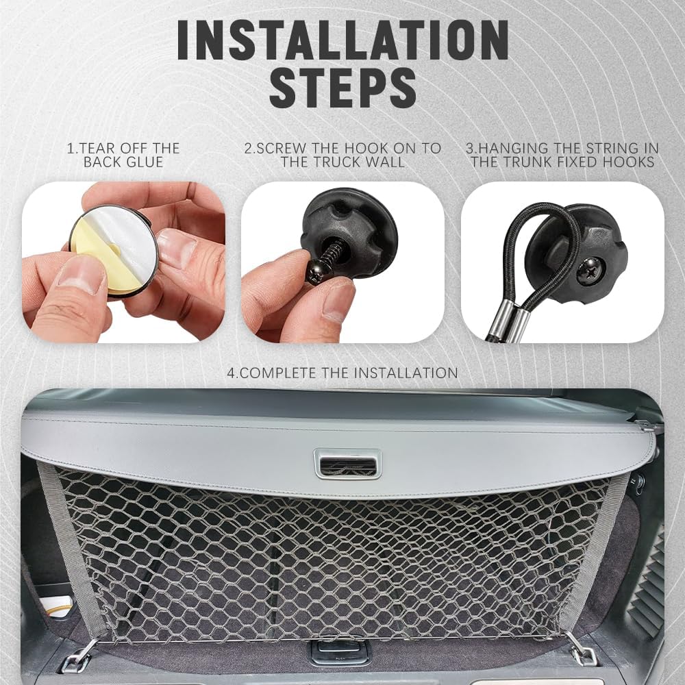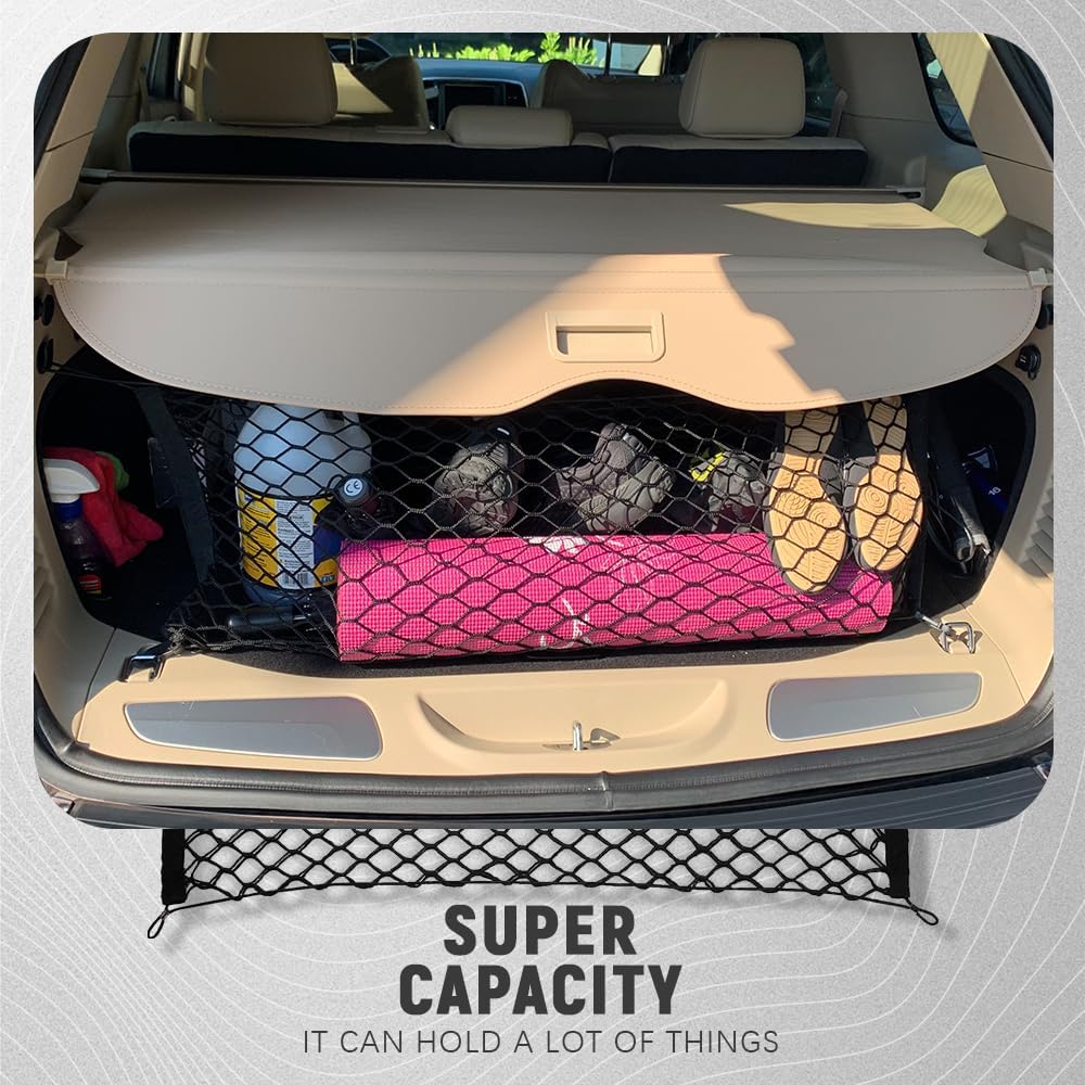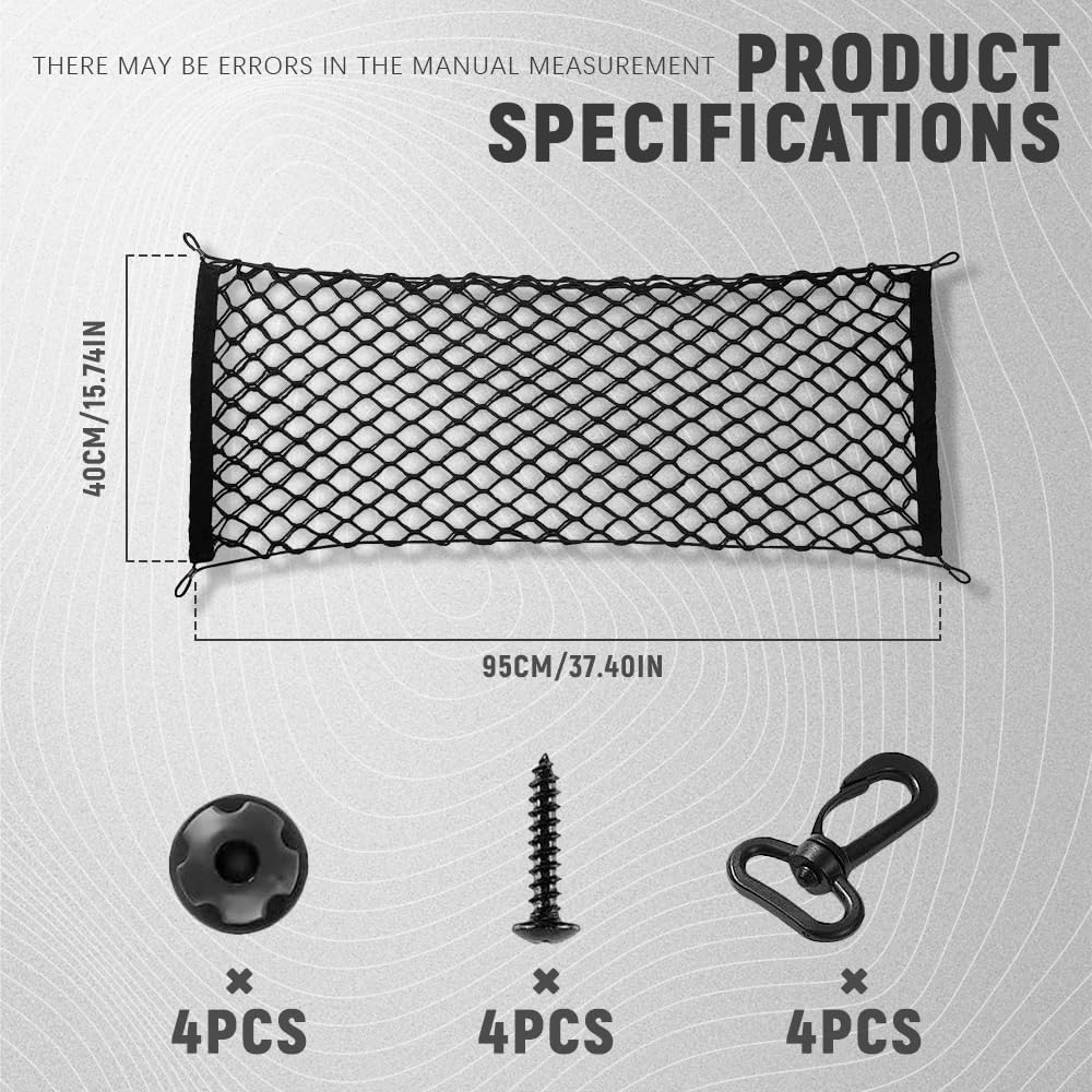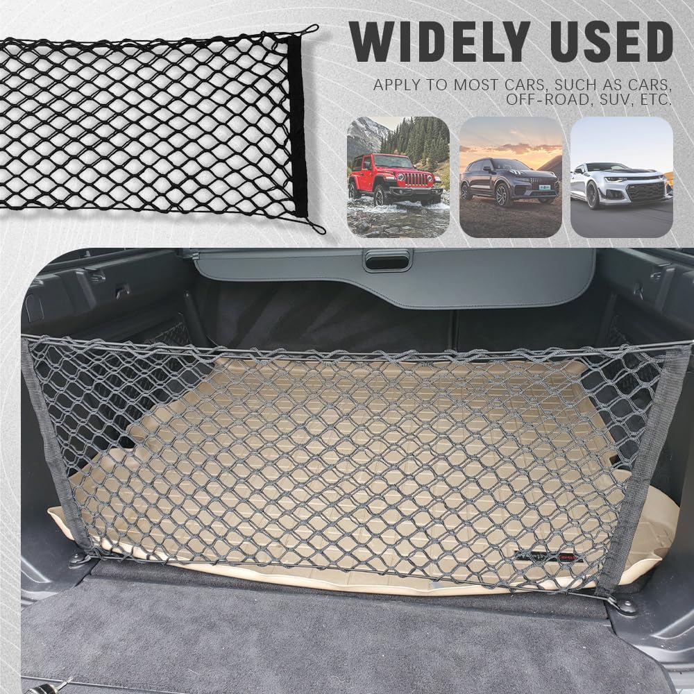 • [يستخدم على نطاق واسع]: يتضمن هذا الجيب الشبكي 4 فتحات أزرار، 4 خطافات، حجم شبكة تخزين صندوق السيارة المرنة القابلة للتعديل هو 35.4*15.7 بوصة، عالمية لمعظم السيارات وسيارات الدفع الرباعي والشاحنات.