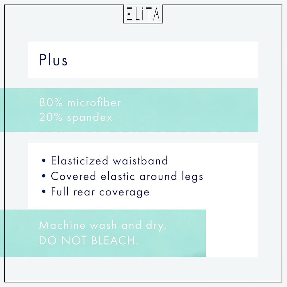 Keep your look classic and comfortable with Elita's Women's PLUS Microfiber Full Panty. Featuring a figure-flattering high cut leg and modest high rise, our ultrasoft, premium microfiber underwear provides full rear coverage in a sleek silhouette. Smooth construction, a sewn-in cotton gusset, non-bunching elasticized waistband and stretch fabrication ensure all day non-pinch comfort. Machine washable, our classic microfiber panty will maintain its shape through multiple washes. Includes one pair of high rise panties. Elita: Designed By Women For Women.