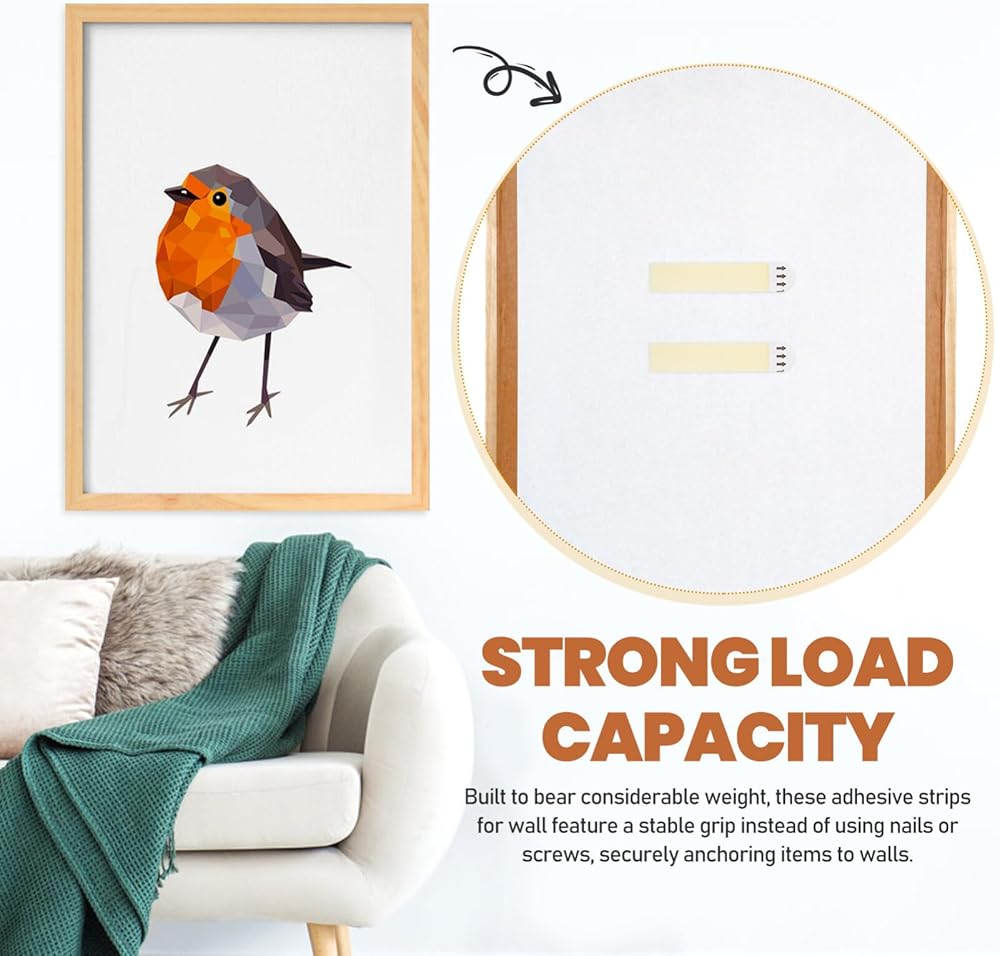 Transform your living spaces effortlessly with our Heavy Duty Adhesive Picture Hanging Strips. Designed to securely hold frames, mirrors, and canvases without damaging walls, these strips offer a simple, no-nail alternative. They're incredibly strong, capable of supporting heavy items, and when it's time for a change, they remove easily.