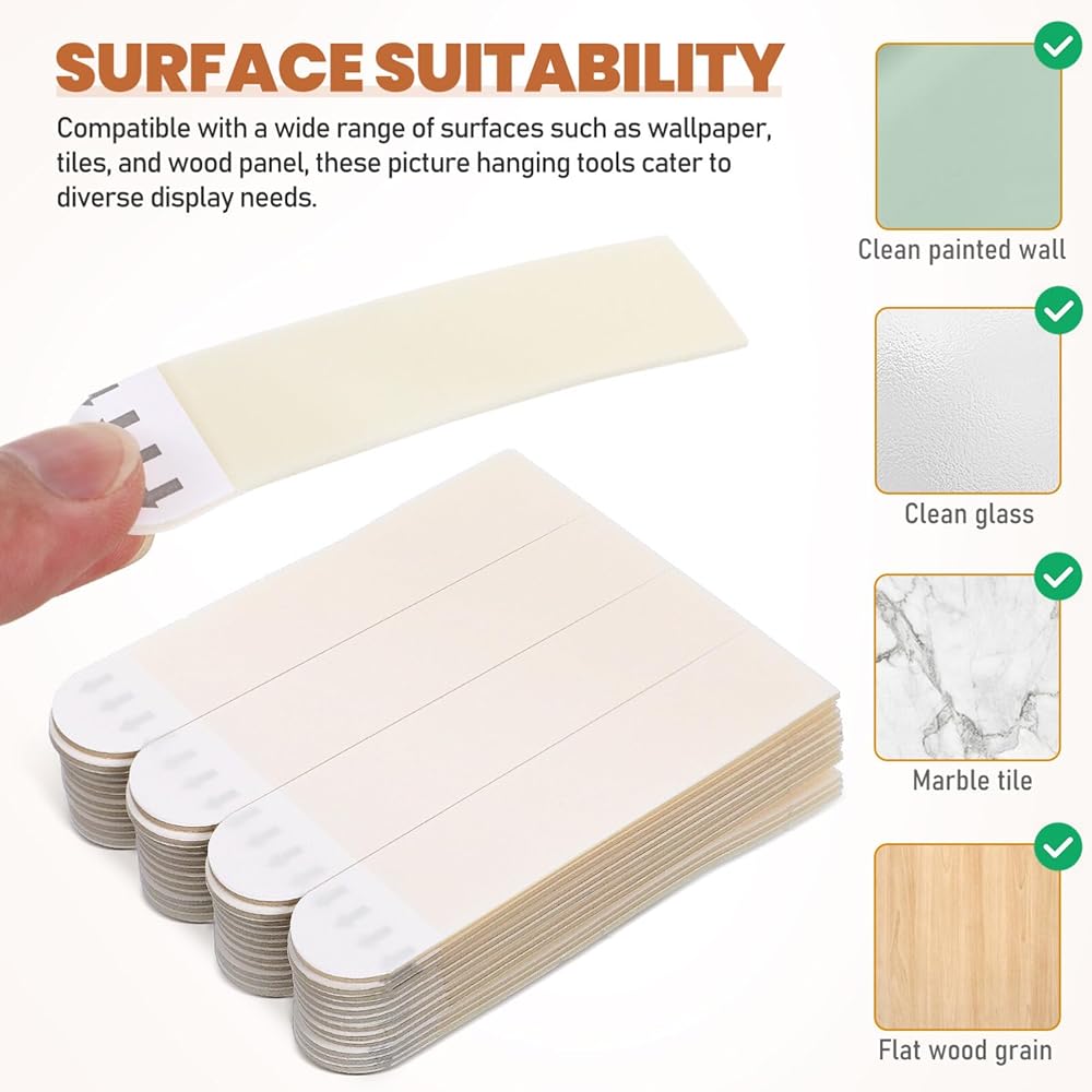 -Damage- hanging: Say goodbye to drills, nails, and hooks. These hanging strips leave no marks or holes, preserving your home's aesthetics and integrity.
