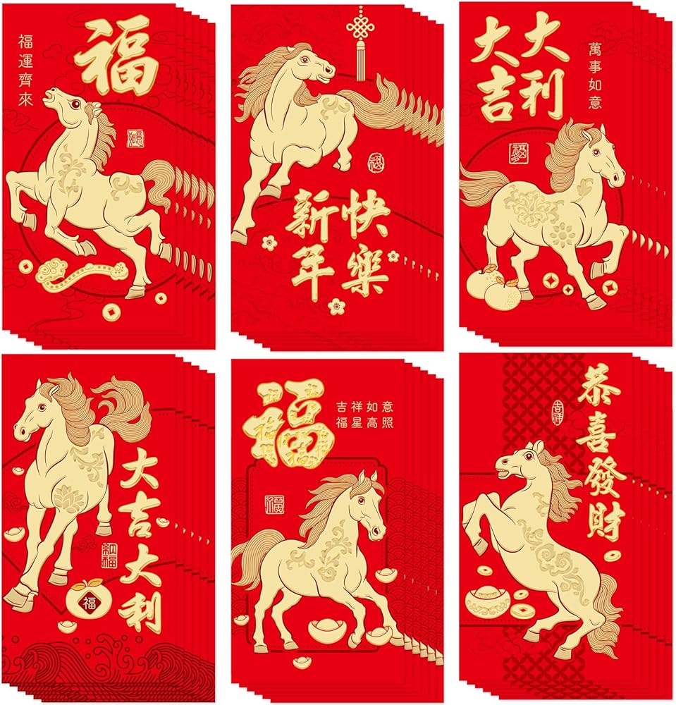 مجموعة 36 قطعة من الأظرف الحمراء للعام الصيني الجديد: تحتوي هذه العبوة على 36 ظرفًا أحمر في 6 تصميمات مختلفة، مقاس كل منها 3.5 × 6.7 بوصة. مثالية لإهداء المال المحظوظ خلال السنة القمرية الجديدة، أو حفلات الزفاف، أو أعياد الميلاد، أو أي مناسبة احتفالية. الحجم الكبير يسمح بسهولة التعامل والهدايا.