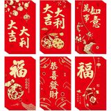 تصميمات تقليدية احتفالية: يتميز كل ظرف برموز صينية تقليدية تمثل الرخاء والحظ السعيد والسعادة. التصميمات الحمراء والذهبية الزاهية تجعل هذه الأظرف مميزة، مما يضفي جوًا احتفاليًا واحتفاليًا لأي مناسبة.