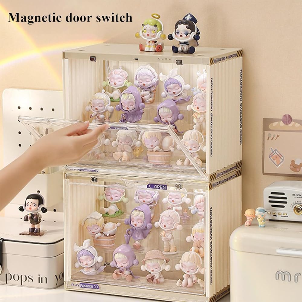 【تصميم باب مغناطيسي وقابل للتكديس】يمكن تكديس صندوق العرض بسهولة دون القلق بشأن السقوط والإمالة، ويوفر باب الشفط المغناطيسي الشفط عند إغلاق الباب؛ سهل الفتح للحفاظ على المجموعة خالية من الغبار، وتقليل أشعة الشمس والأشعة فوق البنفسجية، وتأخير شيخوخة البلاستيك.