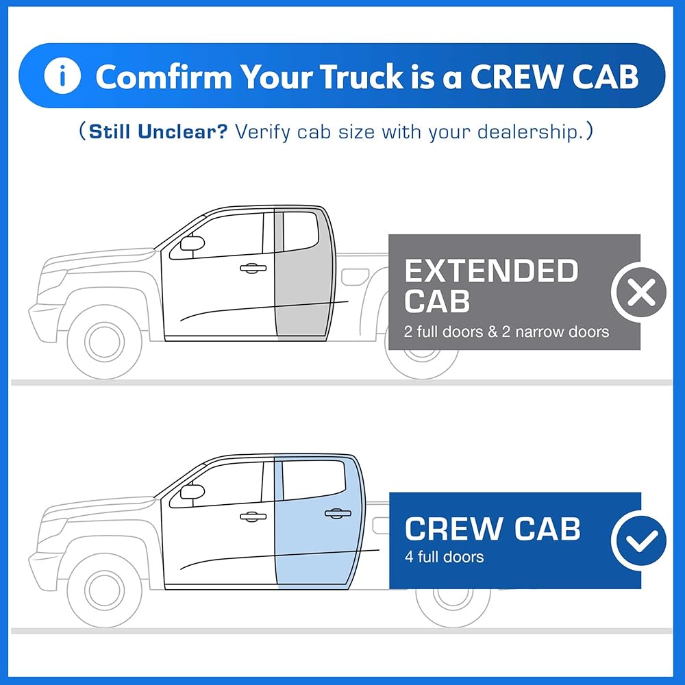 الملاءمة - متوافقة مع 2015-2025 Chevy Colorado / GMC Canyon | كابينة الطاقم [ملاحظة حجم الكابينة: تناسب فقط كابينة الطاقم مع 4 أبواب كاملة الحجم. (انظر الصورة لمزيد من المعلومات)]