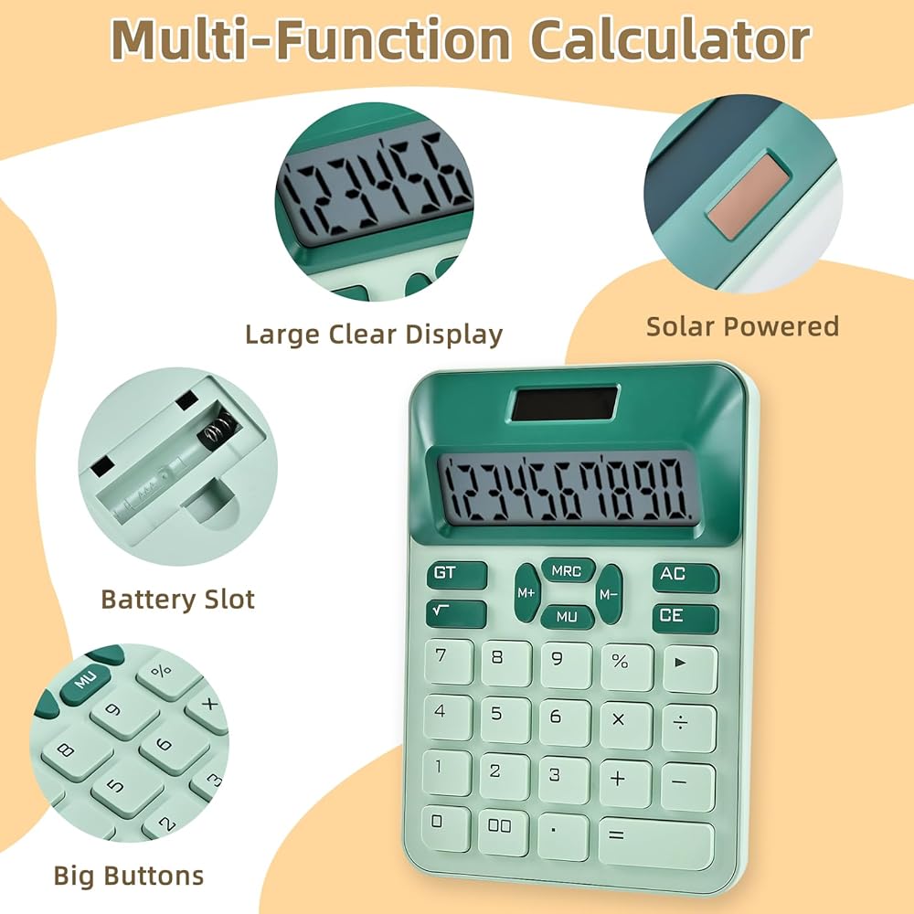 • تصميم كبير بزاوية ارتفاع 30 درجة: تحتوي هذه الآلة الحاسبة المكتبية على أزرار مكتنزة ومرنة وزاوية ارتفاع 30 درجة مع درجة معينة من تجنب الوهج. تعمل هذه الآلة الحاسبة المحمولة ذات 12 بت أيضًا على مطابقة الألوان بشكل ممتع مع أدوات سطح المكتب أو أجهزة الألعاب