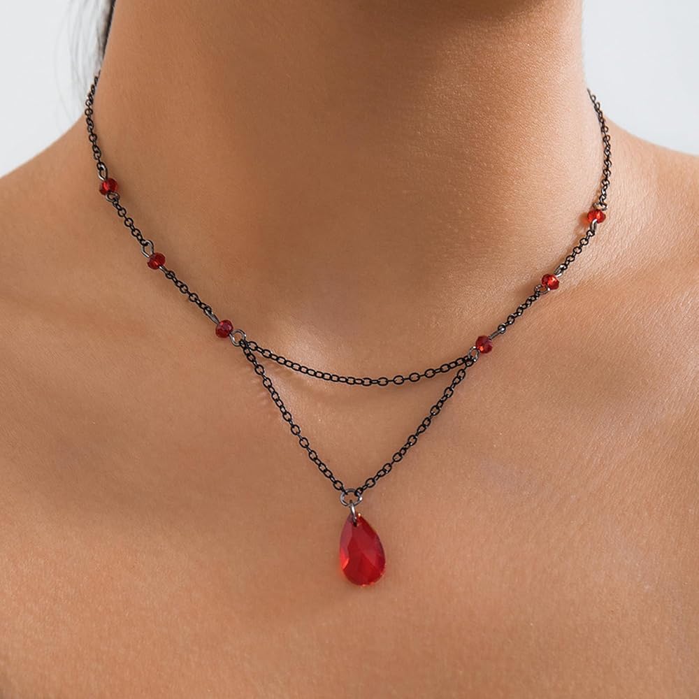 EXQUISITE GOTH NECKLACE FOR WOMEN - Elevate your style with our stunning goth necklace. Featuring a beautiful teardrop design, this necklace is perfect for adding a touch of elegance to any outfit. Whether you're dressing up for a Halloween party or just want to make a bold statement, this goth necklace is a must-have accessory.