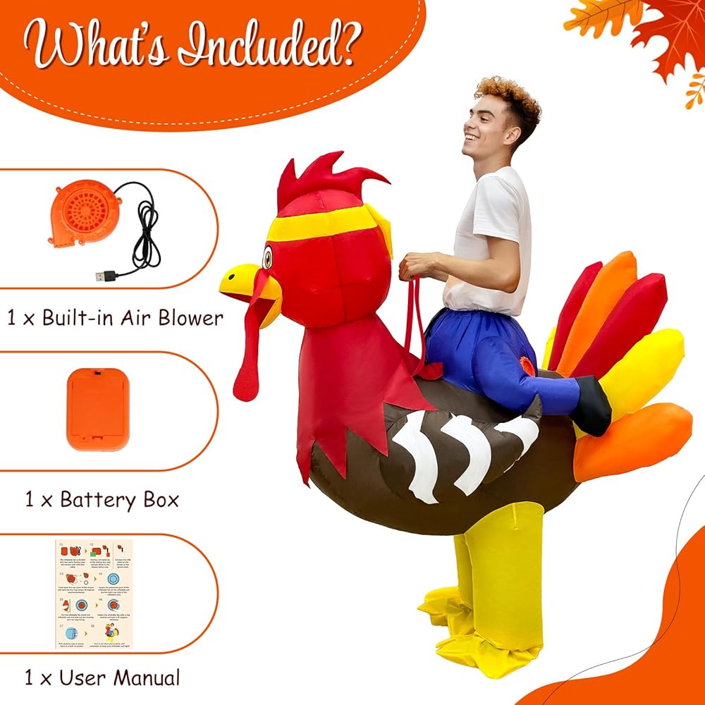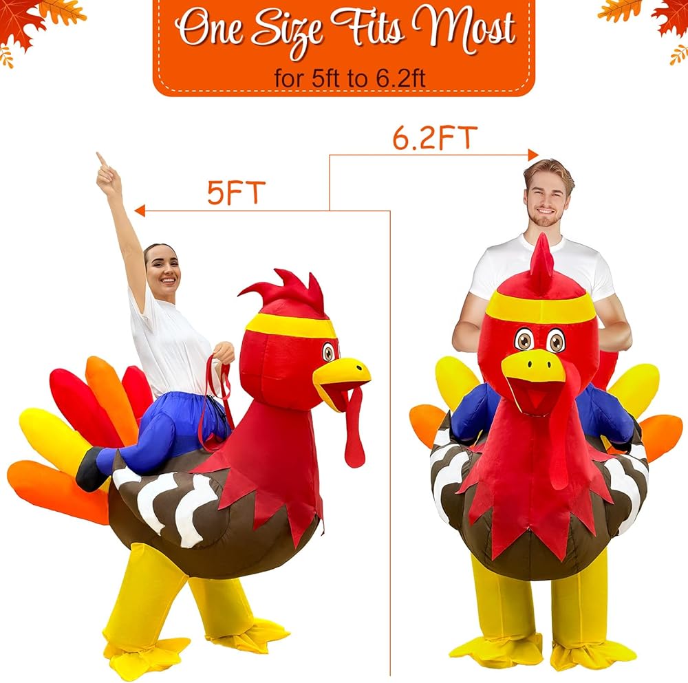 【زي ديك رومي مضحك قابل للنفخ】زي ركوب الديك الرومي القابل للنفخ من AerWo هو زي ركوب ملفت للنظر سيجعل الجميع يلتهمون بسعادة في تركيا تروت. مع المظهر المحاكاة لزي الديك الرومي المنفوخ والرقبة الحمراء النابضة بالحياة، فإن هذا الزي القابل للنفخ للبالغين ذو الحجم الكبير يحول مرتديه إلى ديك رومي كبير الحجم قابل للاحتضان، مما يجعله مثاليًا لاحتضان روح عيد الشكر.