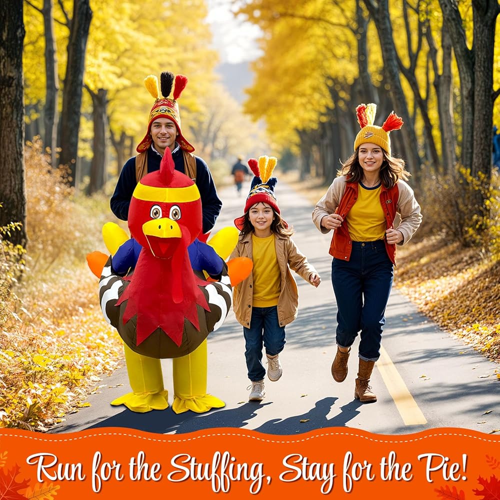 【مقاس واحد يناسب معظم البالغين】زي الهرولة الرياضي للديك الرومي هو زي عيد الشكر متعدد الاستخدامات وشامل يناسب مجموعة من البالغين من 5 أقدام إلى 6.2 أقدام. مصنوع بتصميم واسع وقابل للنفخ، يمكن لزي الديك الرومي هذا أن يستوعب بشكل مريح مجموعة متنوعة من المقاسات، مما يضمن ملاءمة مريحة وواثقة لمرتديها. يتيح لك زي الهرولة الديك الرومي هذا الانزلاق بسهولة عبر الغرفة كما لو كنت تقود المجموعة في سباق هرولة الديك الرومي النابض بالحياة.