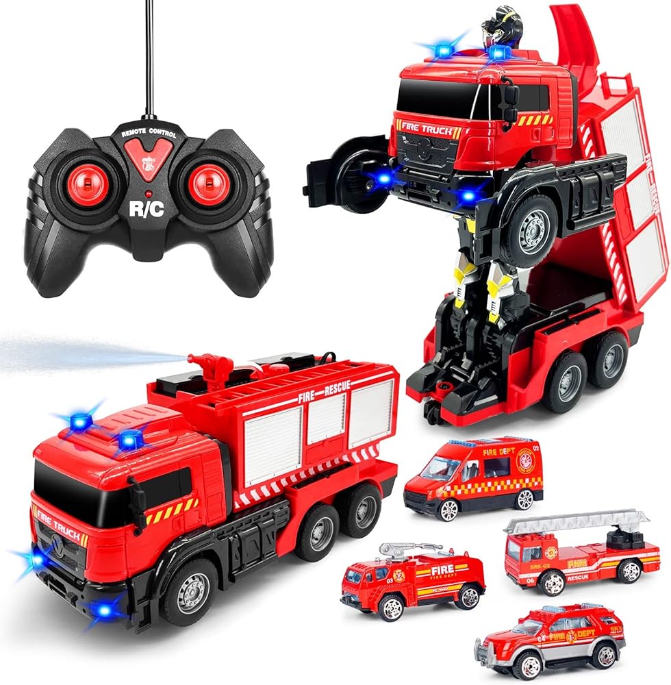 【عرض بنقرة واحدة】تحتاج فقط إلى الضغط على الزر، يمكن لشاحنة الإطفاء هذه التبديل بين شاحنة الإطفاء وروبوت السيارة. يمكن لأطفالك التحكم في سيارة الإطفاء التي تعمل بالتحكم عن بعد للتحرك في أي اتجاه من خلال جهاز التحكم عن بعد. يتطلب جهاز التحكم عن بعد بطاريتين AA.