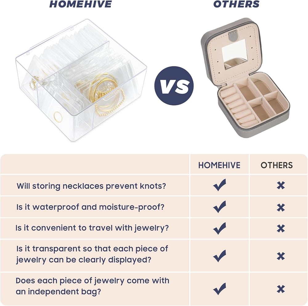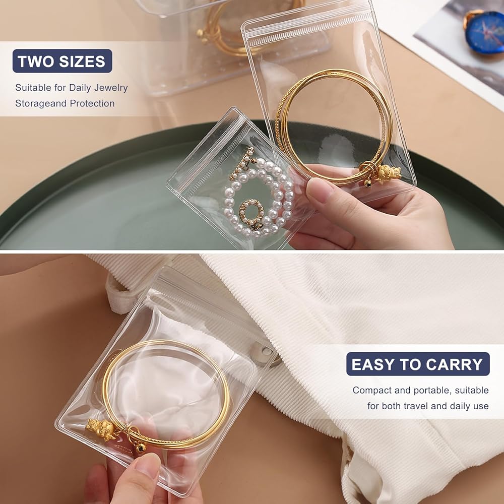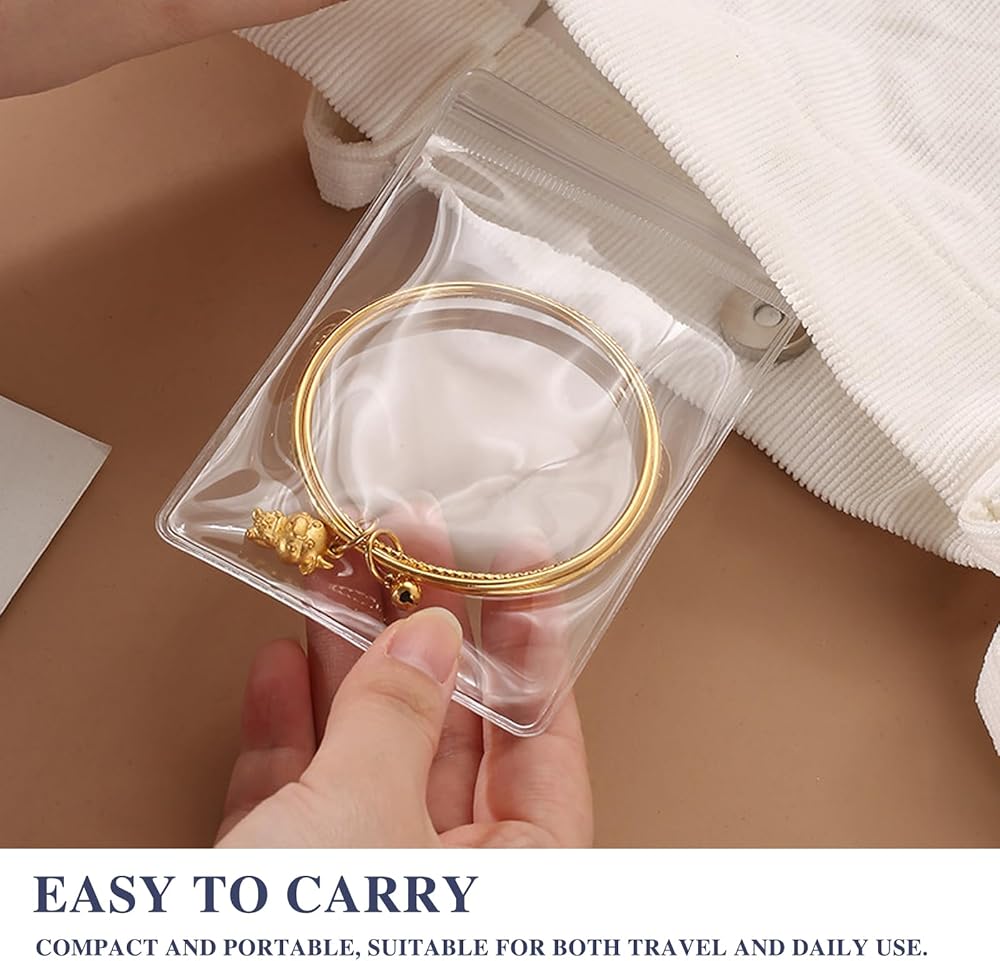تصميم شفاف ومحمول وخالي من التشابك: توفر حقائب PVC الشفافة رؤية واضحة، مما يجعل من السهل تحديد موقع مجوهراتك في لمحة. يتم تخزين كل قطعة بشكل فردي لمنع التشابك وهي صغيرة بما يكفي لسهولة السفر، مما يضمن إمكانية حمل قطعك المفضلة معك أينما ذهبت.