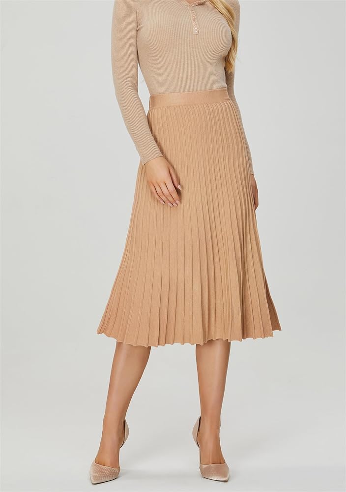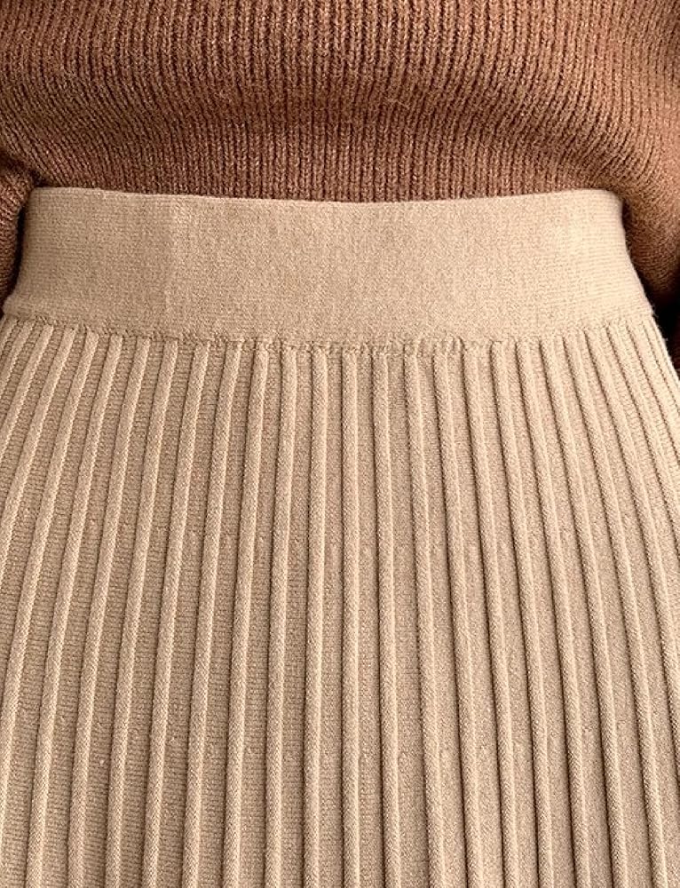 راحة أنيقة: تجسد هذه التنورة طرازًا أنيقًا ومريحًا، مثالية لاحتضان أجواء الخريف والشتاء الباردة مع الحفاظ على الموضة.