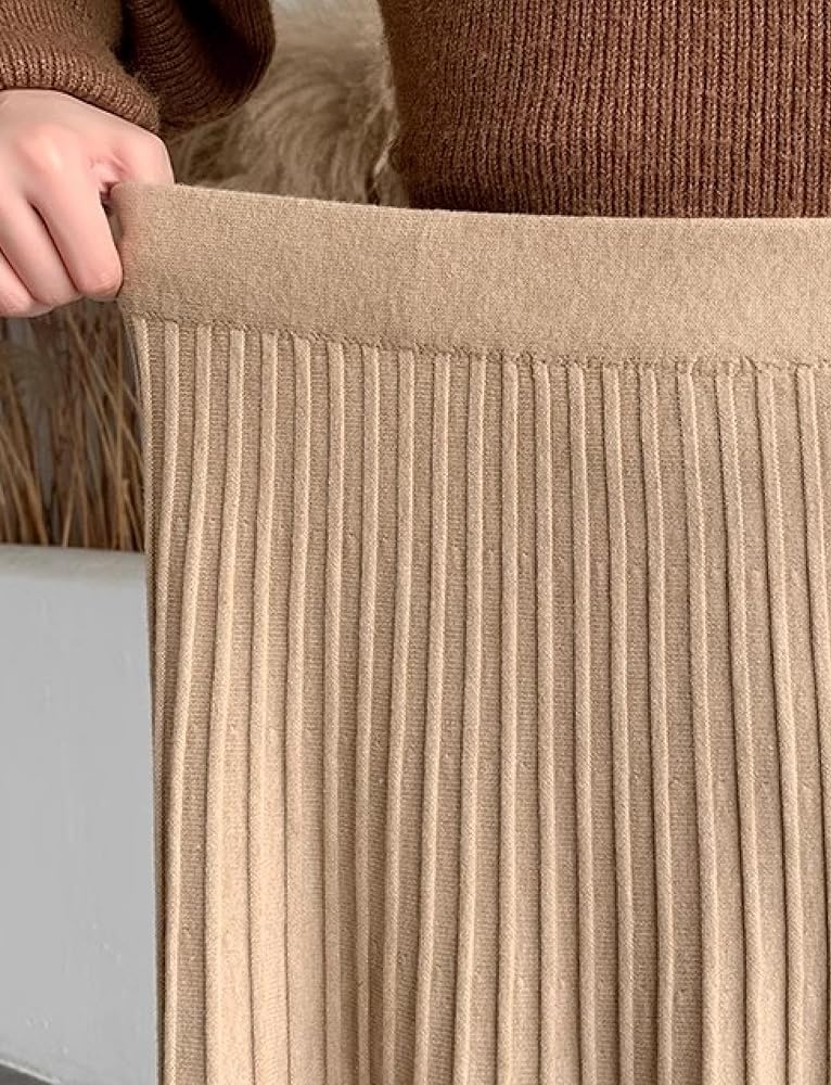 راحة دافئة ومتماسكة: هذه التنورة الطويلة ذات الخصر العالي مصنوعة من قماش دافئ ومحبوك، وتجمع بين الراحة والأناقة، مما يجعلها خيارًا مثاليًا للمواسم الباردة.