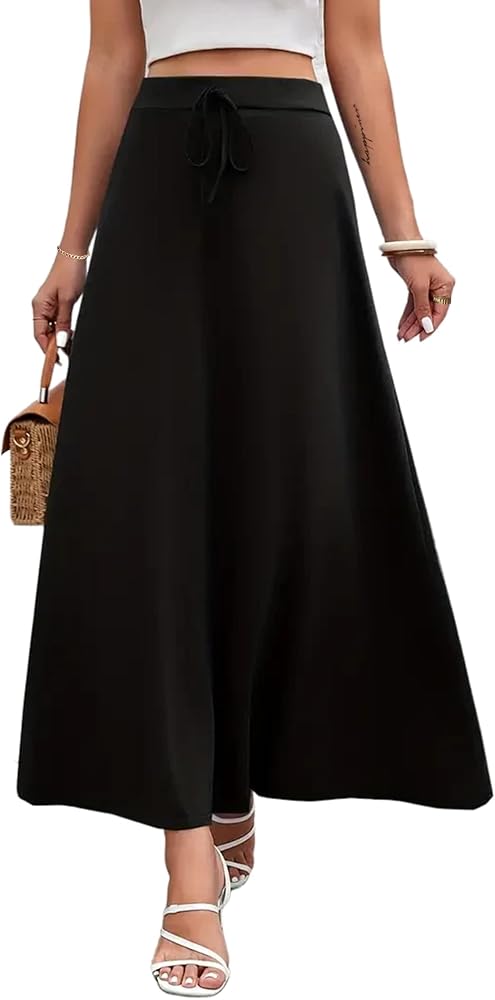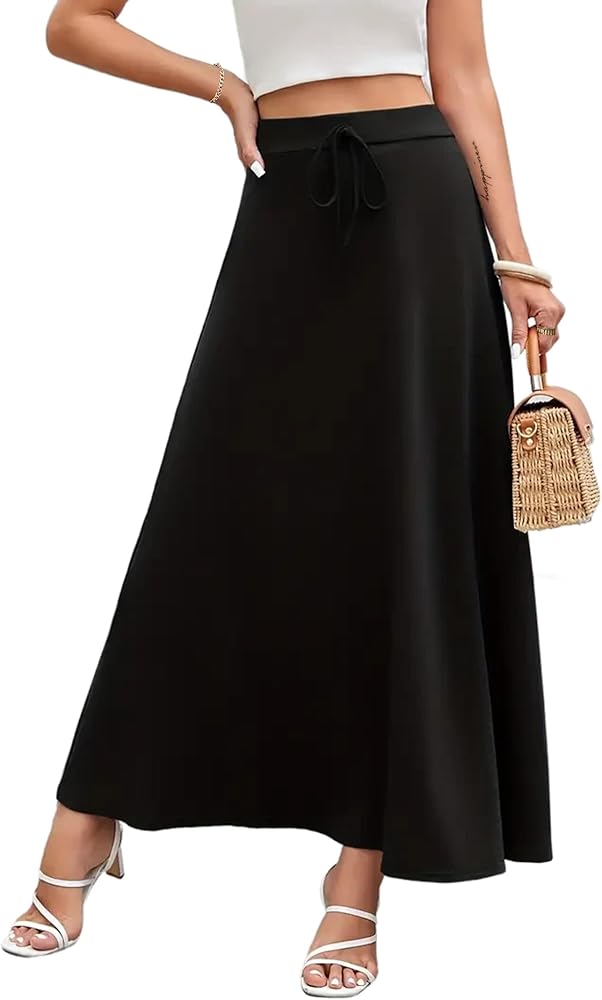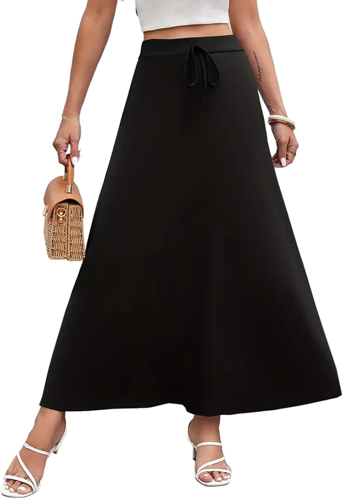 Tie Front A Line Long Skirt Elastic High Waisted Swing Maxi Skirt for Women
