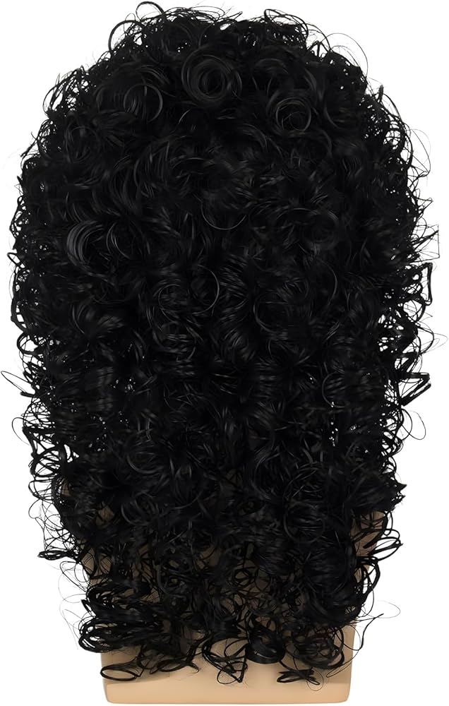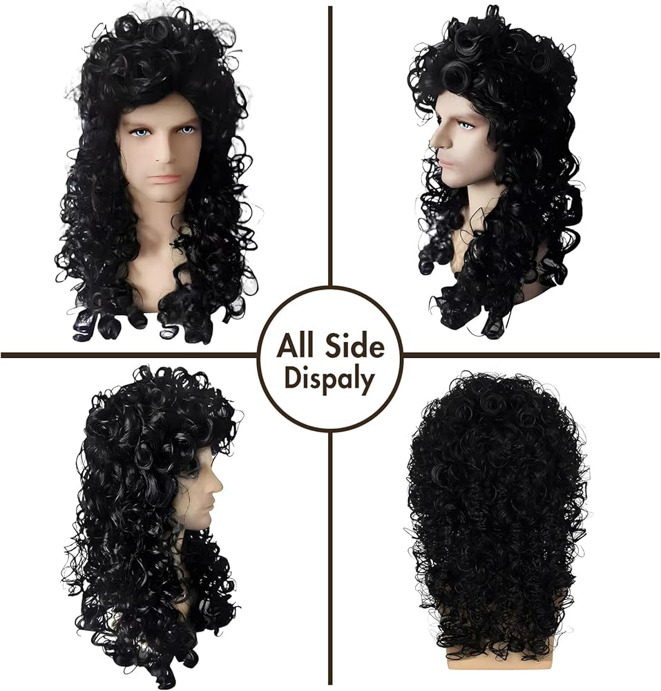 【تتضمن العبوة: 1 × شعر مستعار أسود طويل للرجال + 1 × قبعة شعر مستعار.