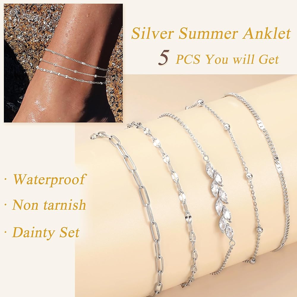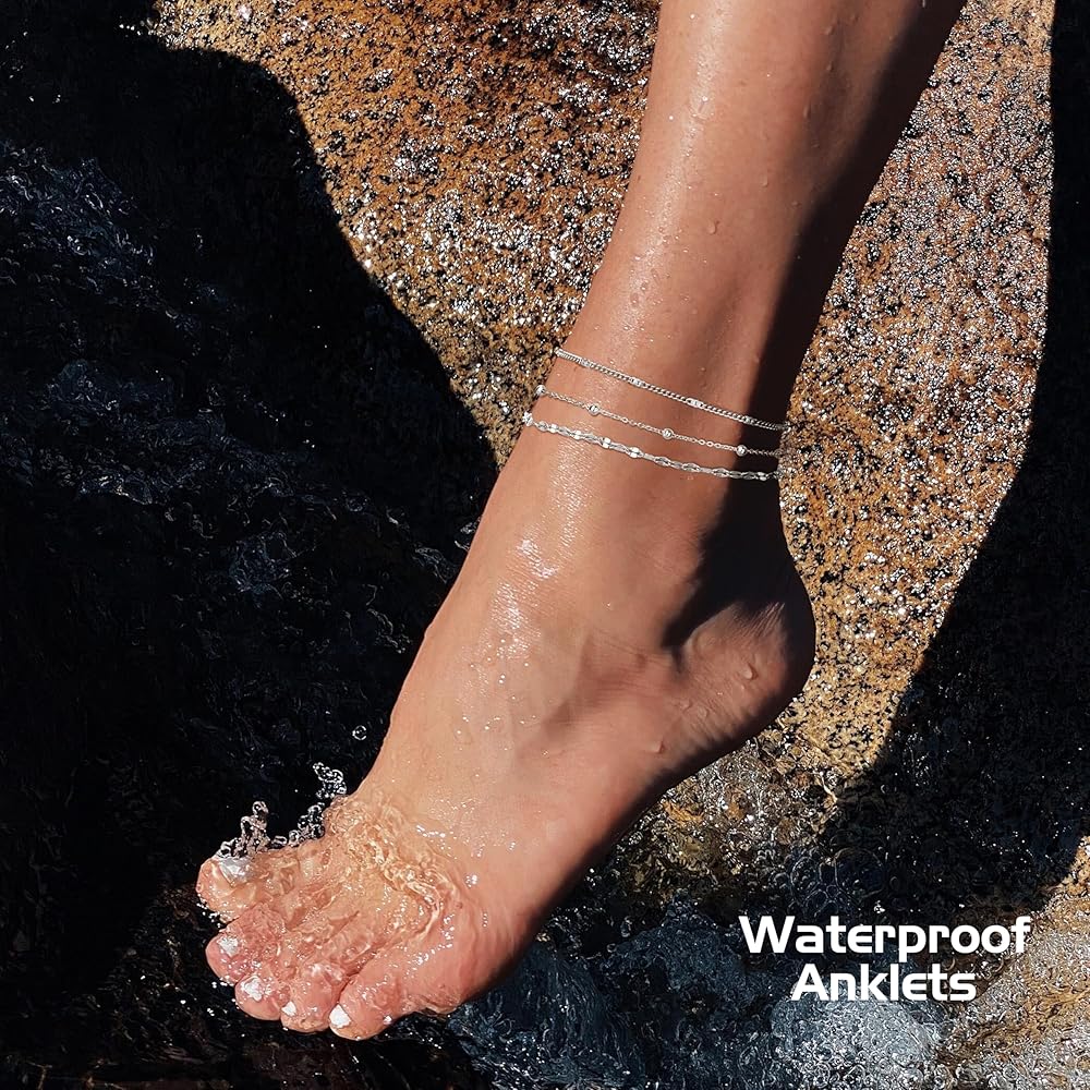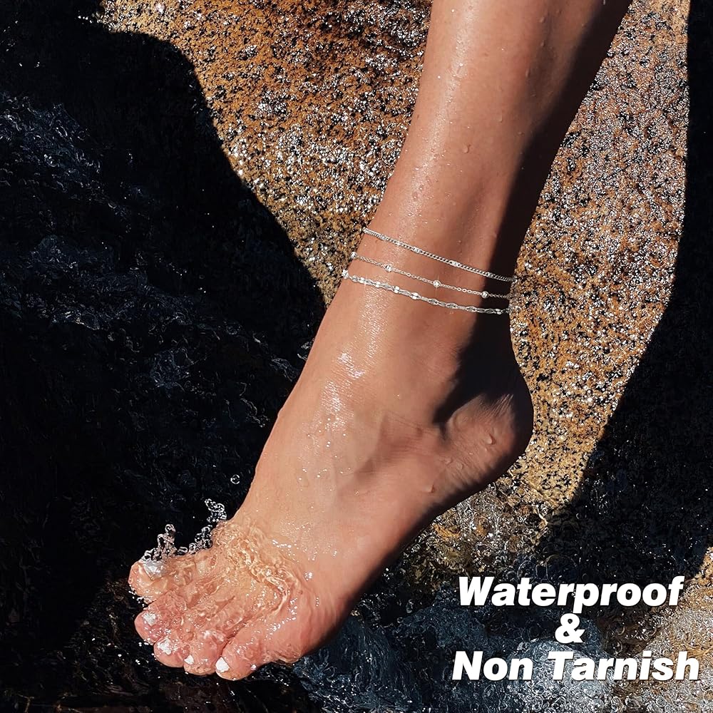كاحل مقاوم للماء ولا يفقد بريقه: خلخال من الفولاذ المقاوم للصدأ مطلي بالذهب عيار 14 قيراط، أو سوار خلخال مطلي بالفضة، لا يبهت أبدًا، خالٍ من النيكل، لا يسبب الحساسية، لا يفقد بريقه، أفضل من النحاس، ويمكنك ارتداؤه كل يوم، حتى أثناء الاستحمام أو السباحة