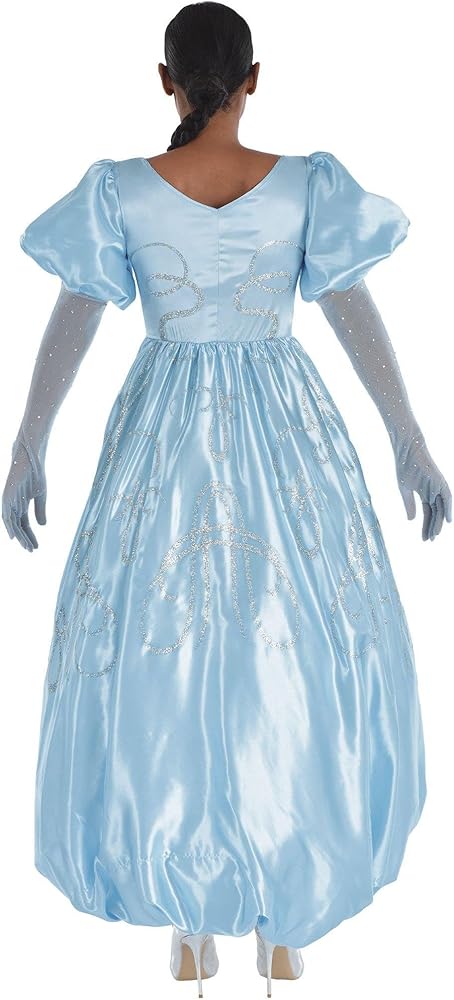 Elegant Transformation: Party City's Adult Cinderella Costume lets you step into the role of the elegant and warm-hearted Queen of Cinderellasburg. This enchanting costume includes a stunning voluminous dress with sparkling details and a pair of pearl-covered gloves, embodying Cinderella's charm.