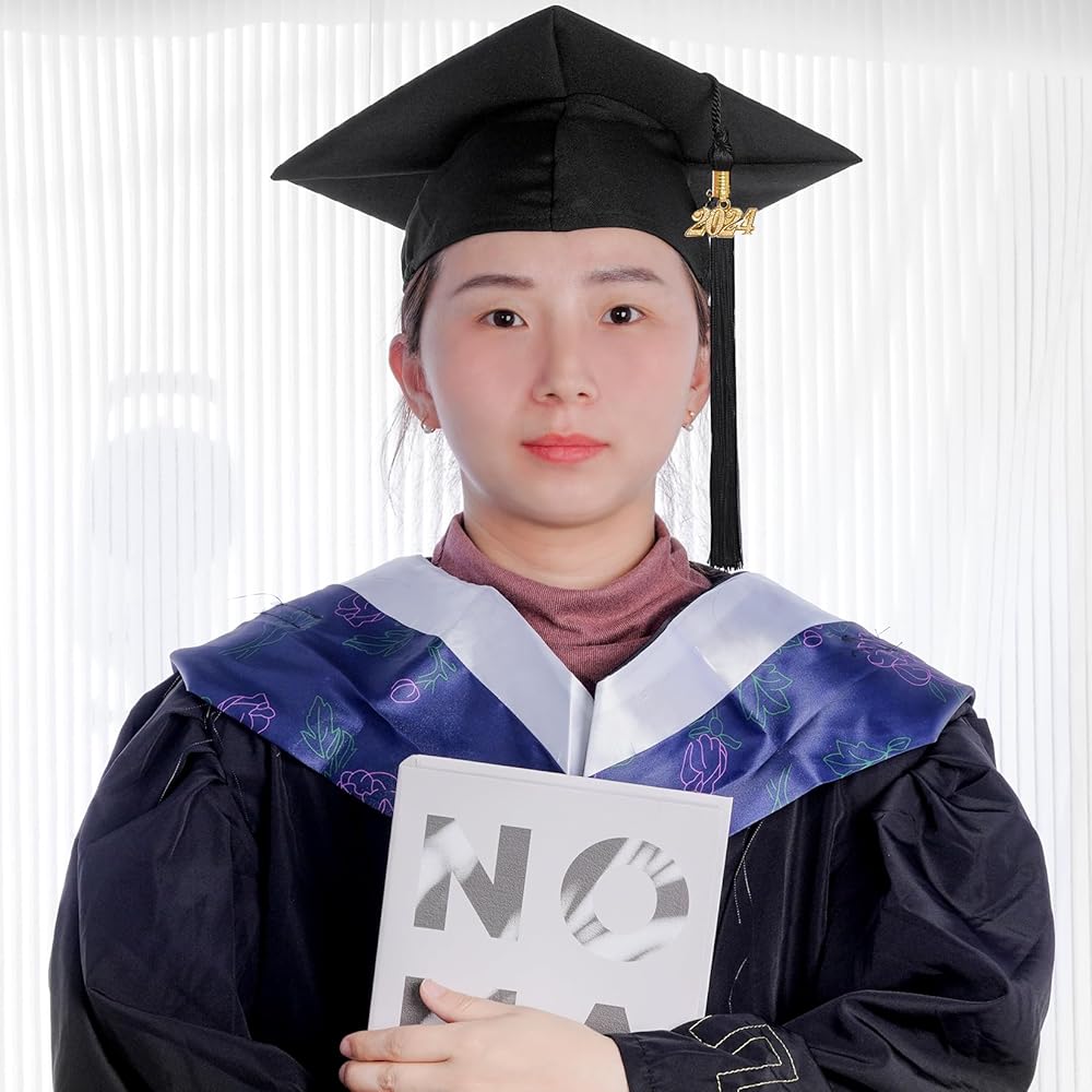 SUMERSHA Unisex Adult Matte Graduation Cap with 2024 Tassel Year Charm High School and Bachelor Graduation Cap