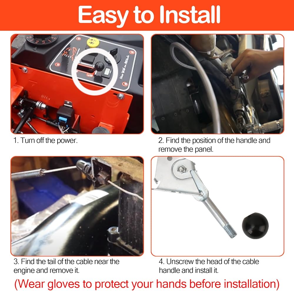 【سهلة التركيب】قبل التركيب، ارتدي قفازات لحماية يديك. يمكن لكابل إيقاف فرامل جزازة العشب أن يحقق مشاركة وفك ارتباط سلس، مما يجعل من السهل التشغيل.