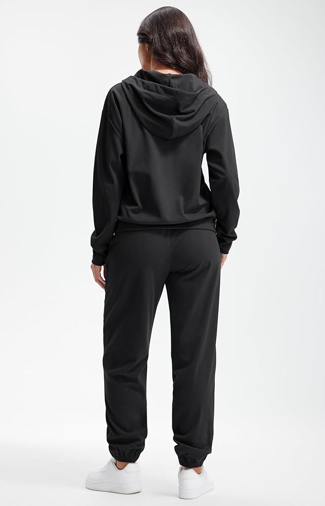 نسيج مريح: طقم صالة Libin النسائي المكون من قطعتين مصنوع من قماش مخملي ناعم، مما يوفر راحة ممتازة وأسلوب عصري. تعتبر هذه البدلة الرياضية النسائية خيارًا مثاليًا للمواسم الانتقالية مثل الخريف أو الربيع