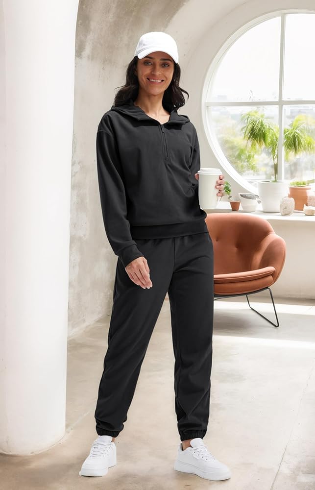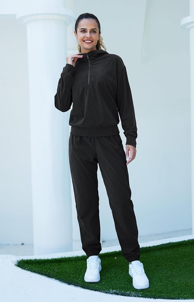 تفاصيل المنتج: تتميز ملابس الخريف النسائية بتصميم نصف سحاب وقلنسوة، مما يسمح لك بتعديل السحاب وارتداء القلنسوة وفقًا لدرجة الحرارة. تحتوي السراويل الرياضية النسائية على جيبين للضروريات، وحزام خصر مطاطي، ورباط لتوفير أقصى قدر من الراحة طوال اليوم.