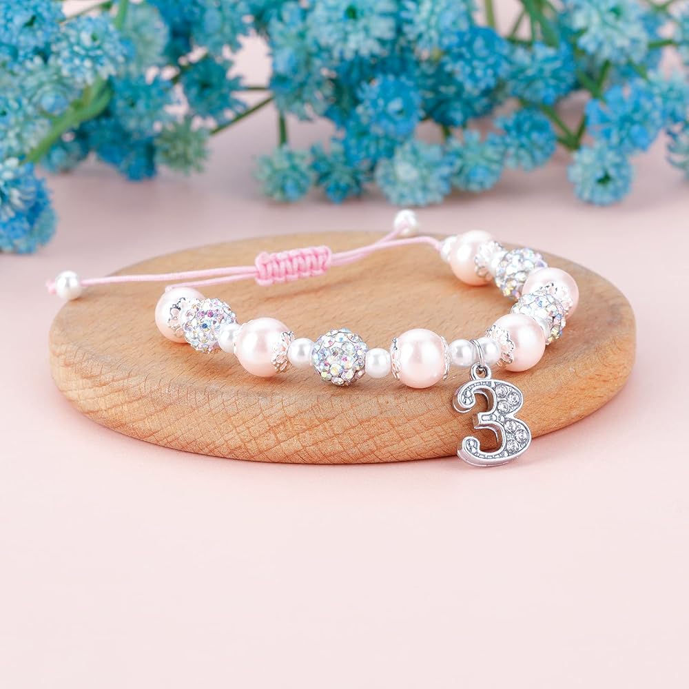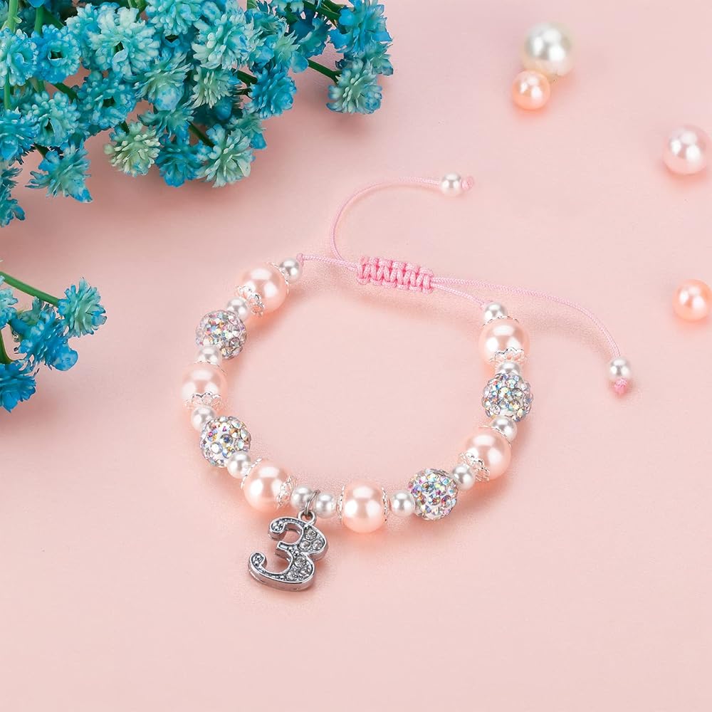 ✔【سوار ساحر لعيد الميلاد بأرقام ذات مغزى】سوار ساحر بأرقام مدمج مع كرات كريستال من حجر الراين اللامع واللؤلؤ الوردي والأبيض، يرمز إلى الحلاوة والحظ السعيد. من خلال ارتداء هذا السوار دع طفلك يعرف مدى حبك لها.