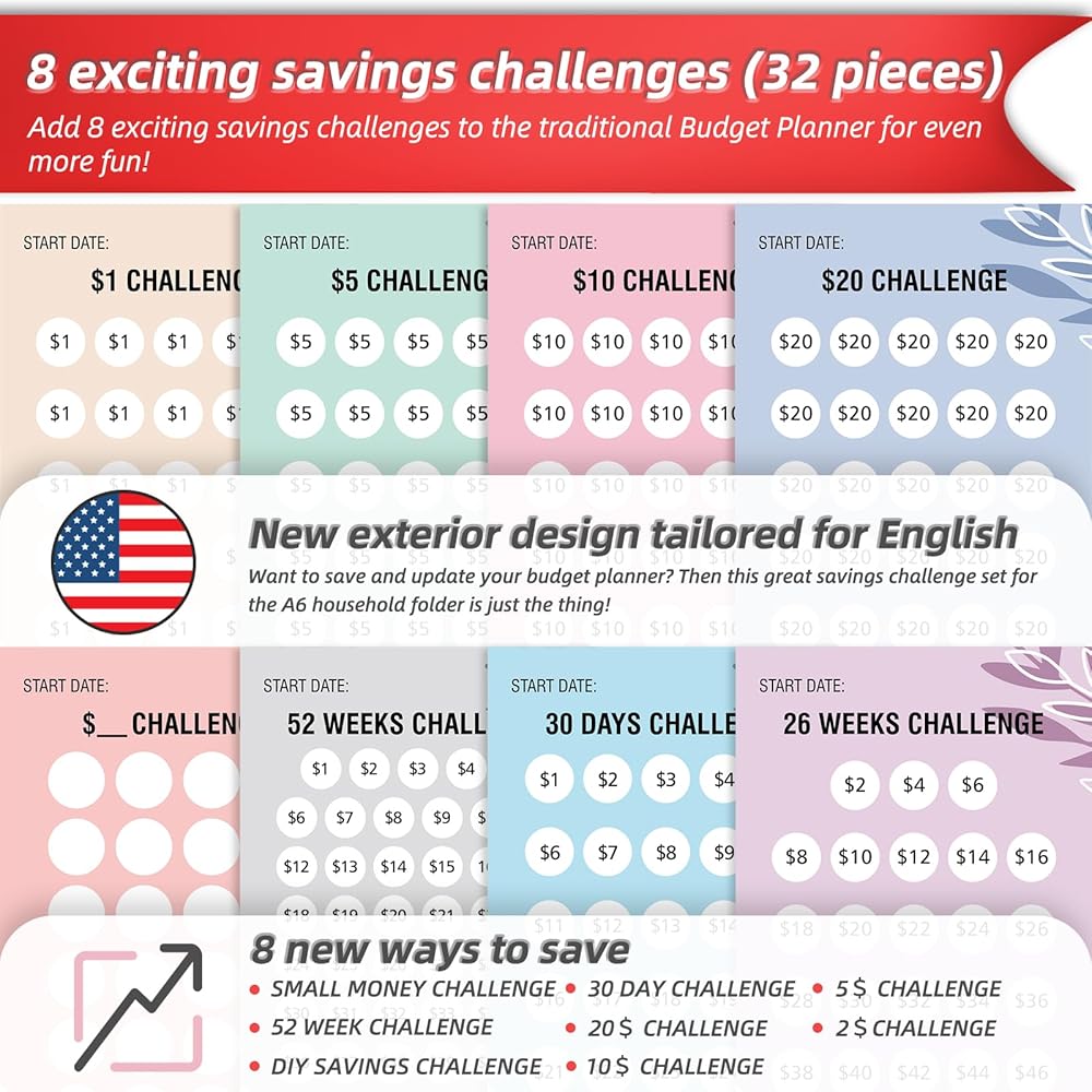 • 💰️【IDEAL GIFT】Financial cash planning money trackers can help you or friends manage money and achieve your budget goals well, and stay out of debt. Budget planning cards is a thoughtful and practical gift for friends and family for a suprise, completing the savings challenge with your family in a more fun way! It can manage daily budget costs, but also capture interesting and exciting moments in life. The positive impact it brings far exceeds itself. This is the best choice for Christmas or birthday gifts.