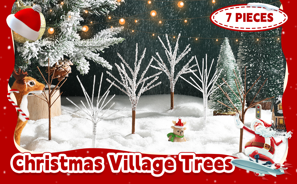 7 قطع من أشجار قرية عيد الميلاد، عرض قرية عيد الميلاد، فروع التوت الاصطناعي لعيد الميلاد في الشتاء، قرية عيد الميلاد المغطاة بالثلوج، أشجار القرية لقضاء العطلات، ديكور حفلات الشتاء