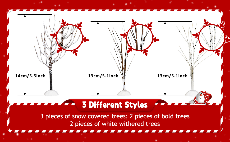 مجموعة متنوعة من الاستخدام: ستكون ديكورات شجرة القرية الشتوية هذه زخارف مثالية لك لصنع مناظر طبيعية مصغرة جميلة أو كديكورات جميلة لحديقتك والفناء وغرفة المعيشة والمزيد للحصول على متعة بصرية لطيفة.
