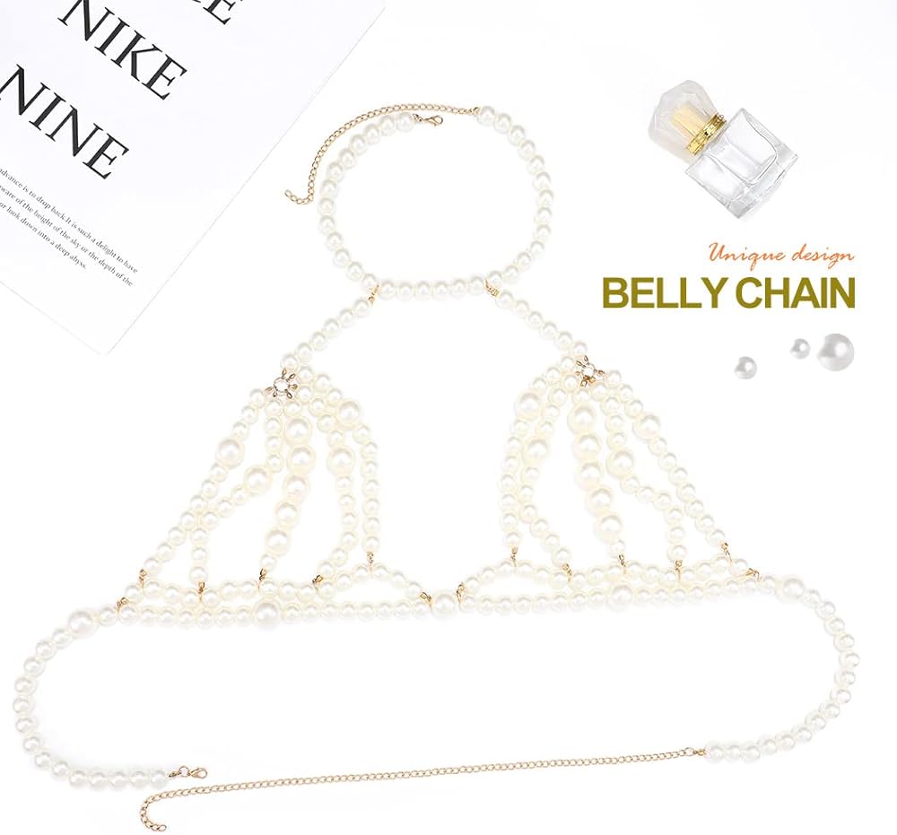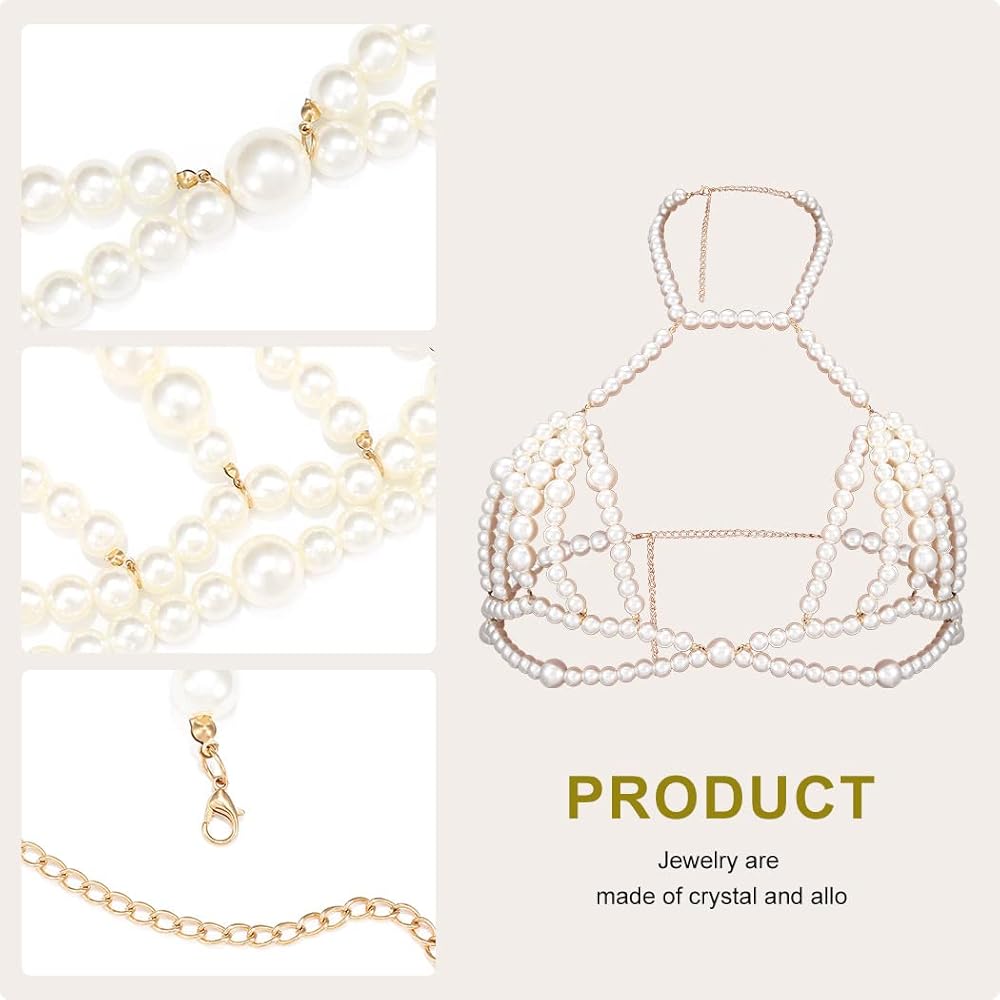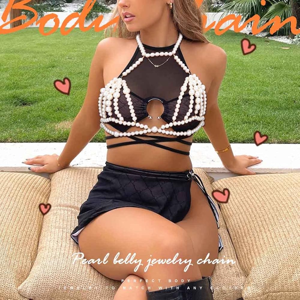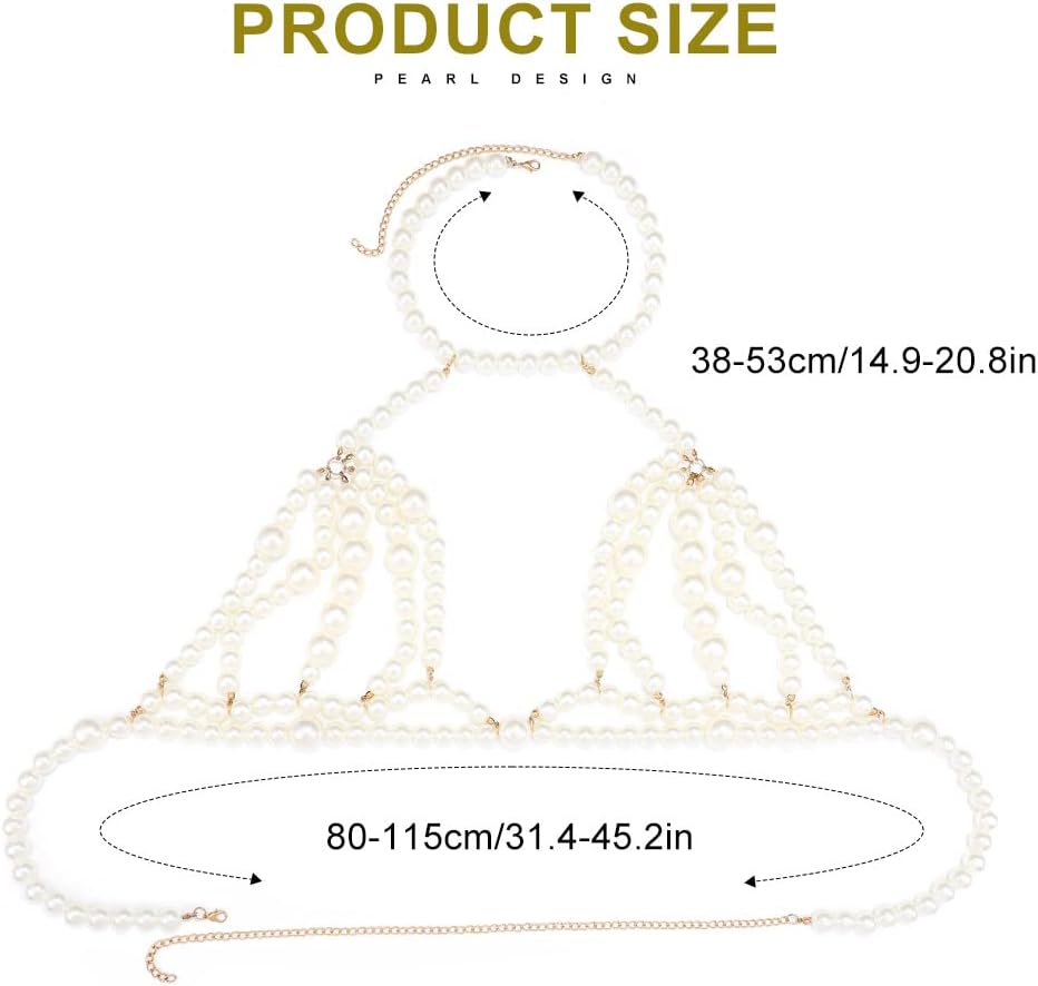 Asooll لؤلؤة الصدرية الجسم سلسلة الطبقات الصدر سلسلة بيكيني الصدرية سلسلة مجوهرات الأزياء شاطئ حفلة موسيقية الهذيان نادي الجسم اكسسوارات مجوهرات للنساء والفتيات