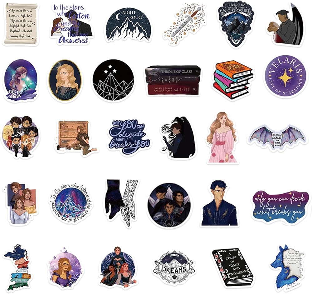 120Pcs Acotar Merchandise Stickers Pack, Book Graphic Vinyl Waterproof Sticker Decals for Water Bottle,boot,Laptop,Skateboard,Phone,Journaling,Scrapbooking for Kids Teens Adults for Party Supply