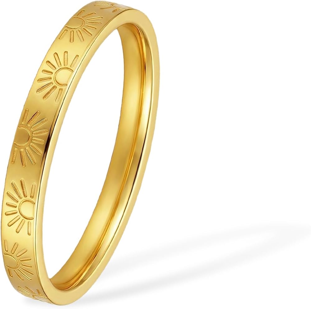 - التصميم: خاتم Sunshine مقاس 2 مم للنساء والرجال، تصميم فريد من نوعه بنقش الشمس - خاتم بشعار "You Are My Sunshine"
