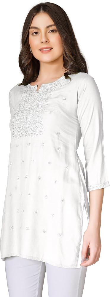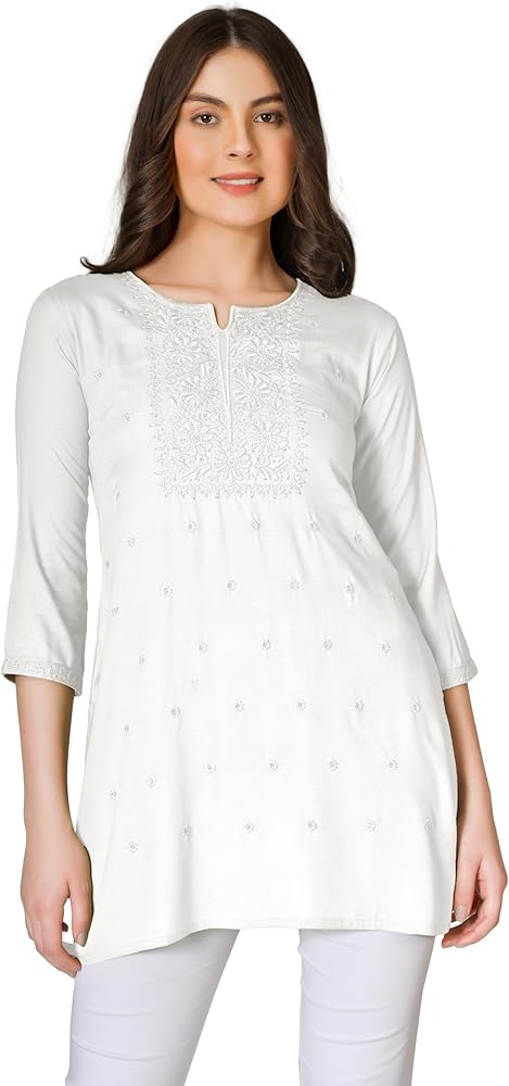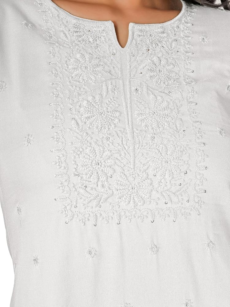 التطريز: تطريز آلي على طراز لاخنافي شيكان حول خط الرقبة في الأمام.
