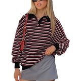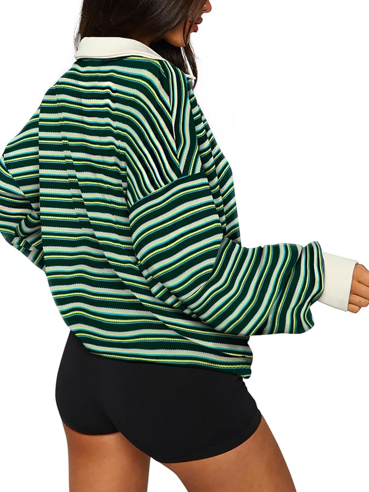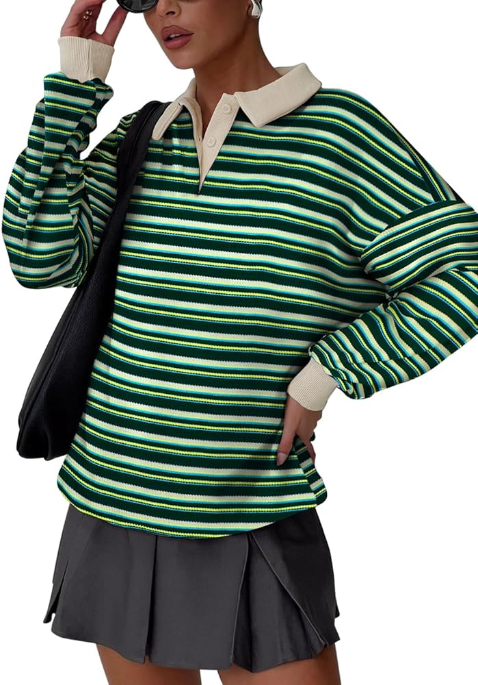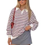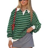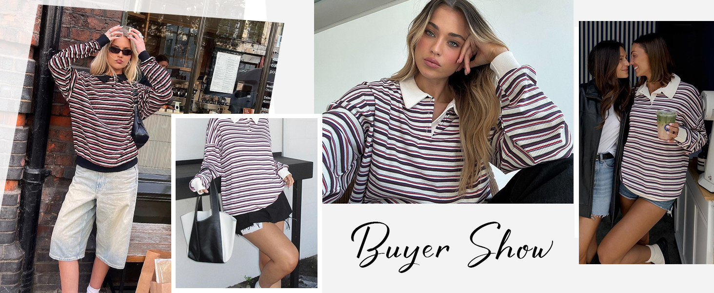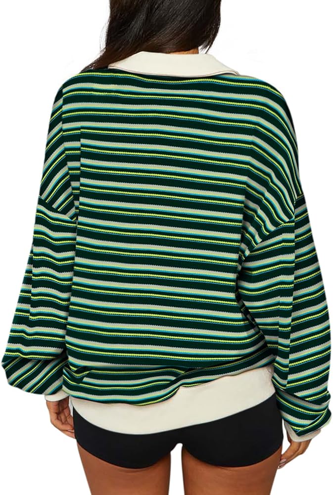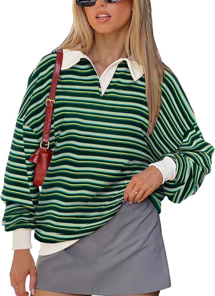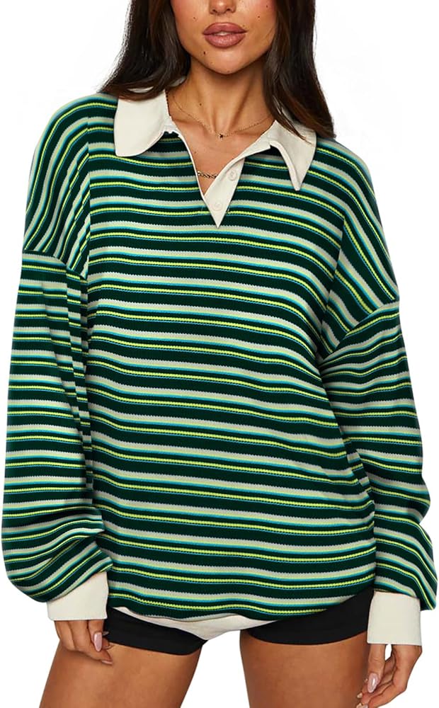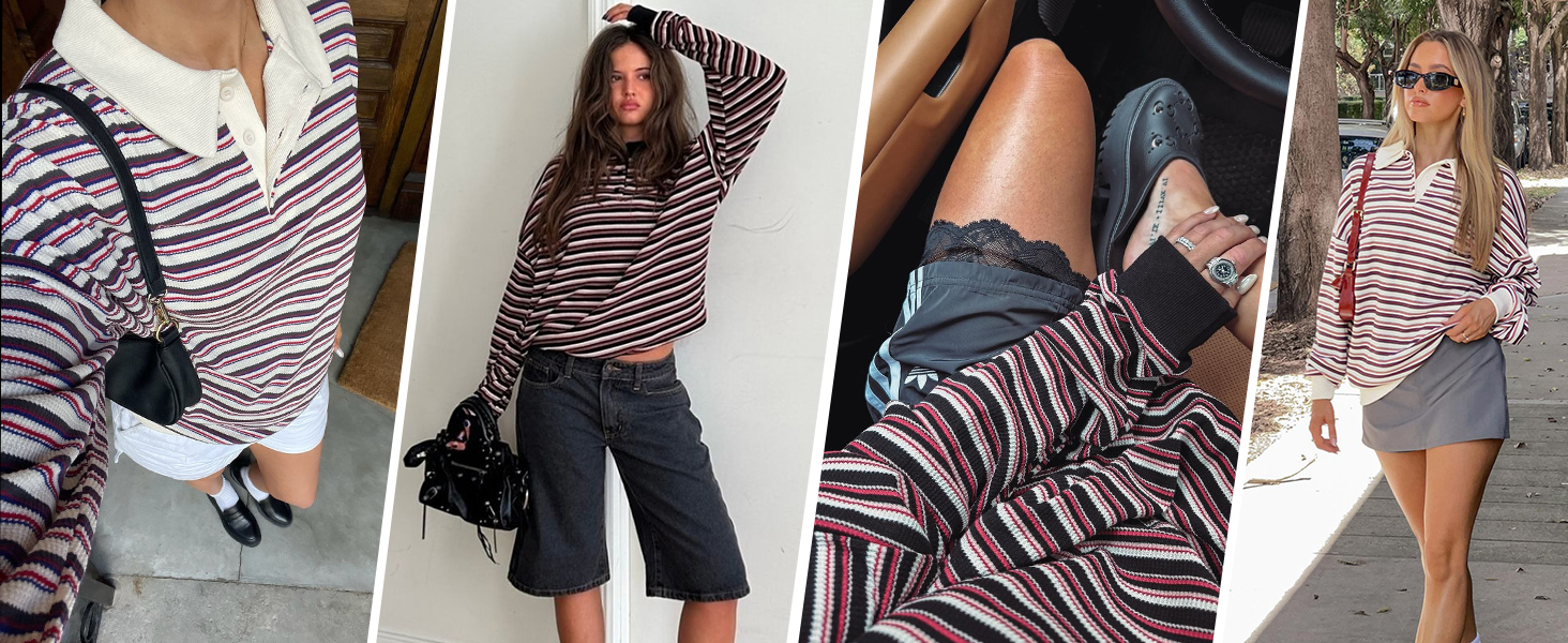 ☀ تصميم عصري: سويت شيرت كبير الحجم للسيدات، مجموعات ألوان رائعة، قميص رجبي، قمصان طويلة الأكمام للنساء، سويت شيرت بلوفر، ياقة كتف منسدلة، سويت شيرت عتيق من التسعينيات، قميص مخطط للسيدات، قمصان كاجوال للنساء، ملابس خريفية للنساء، قمصان y2k.