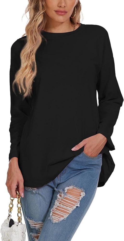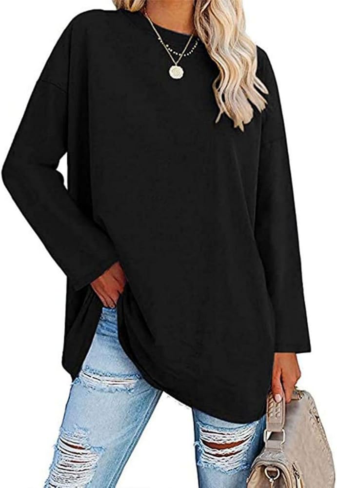 النمط: يأتي التونيك النسائي كبير الحجم بأكمام طويلة في نمطين: تي شيرتات مخططة وتي شيرتات ملونة ثابتة. تي شيرت نسائي برقبة دائرية بمقاس كبير، قميص علوي بأكمام طويلة بأكتاف منسدلة للنساء، كتلة صلبة/ألوان، تي شيرت أساسي، بلوفر فضفاض بأكمام طويلة للربيع والخريف، بلوزة ناعمة ومريحة، مناسبة لجميع المواسم.