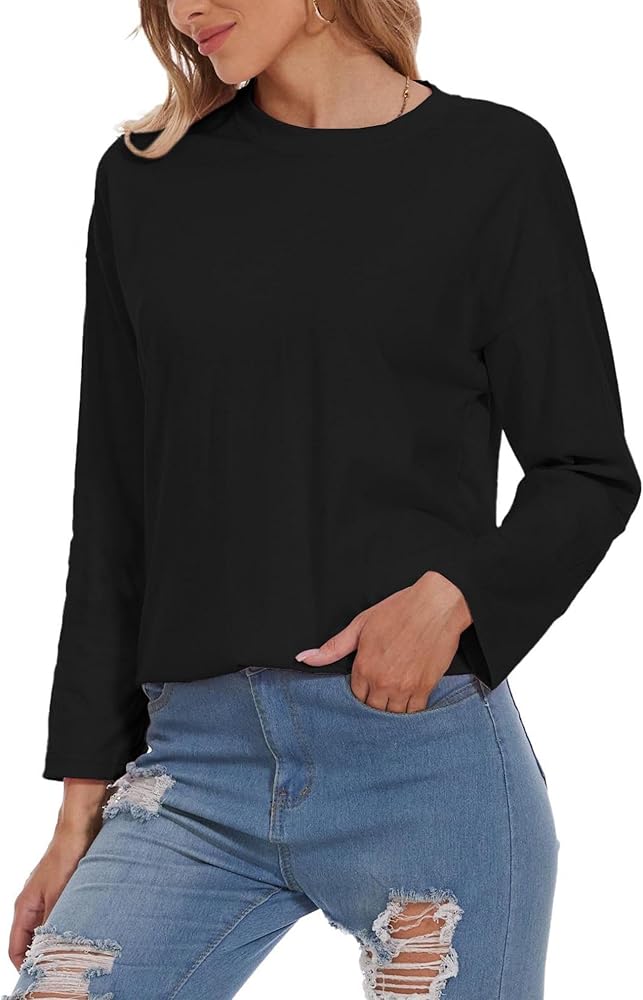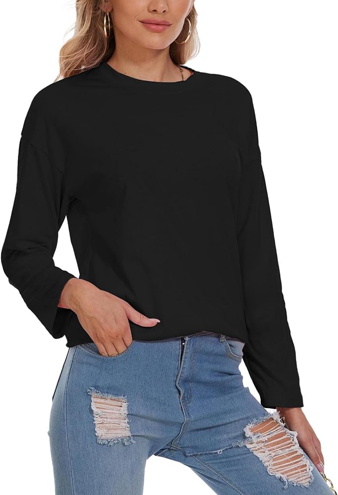 FBARIC: تي شيرت نسائي فضفاض بأكمام طويلة ورقبة دائرية مصنوع من نسيج بوليستر قطني عالي الجودة، وهو ناعم وصديق للبشرة، وخفيف الوزن وجيد التهوية، مما يوفر لك تجربة ارتداء مريحة.
