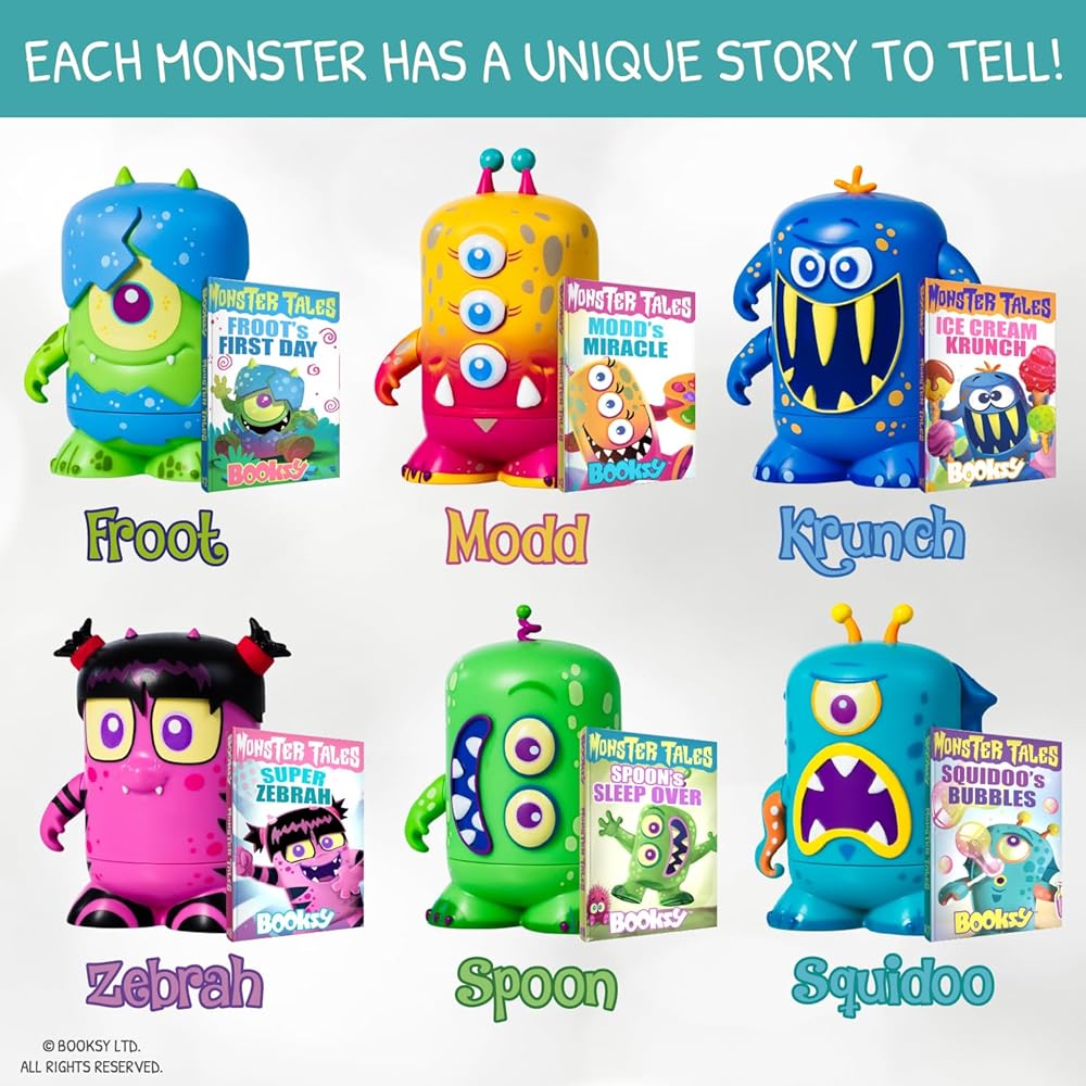 Each monster figure includes a legible miniature book filled with kid-related life lessons featuring over 40 pages of colorful illustrations and storytelling.