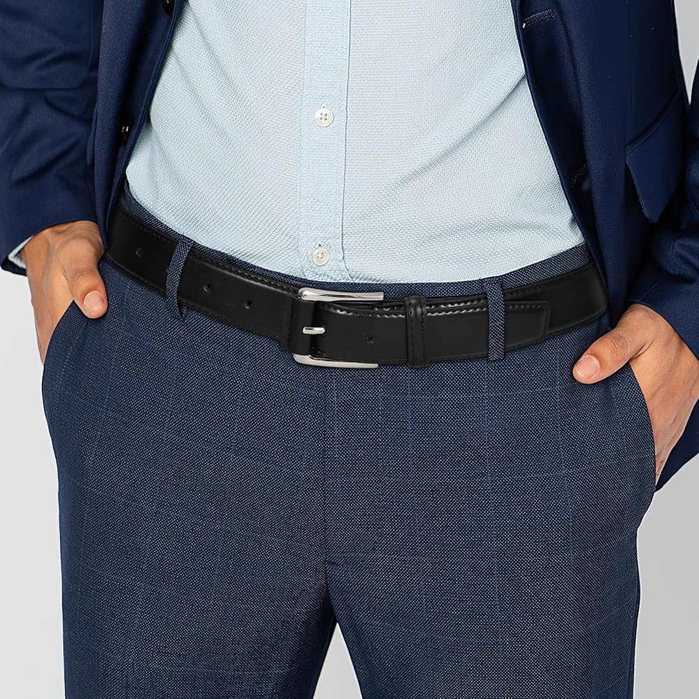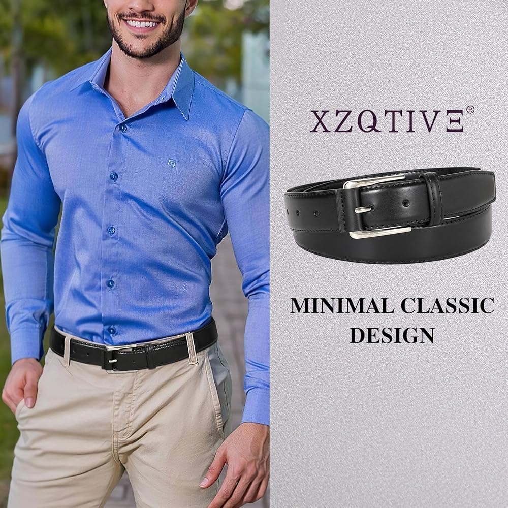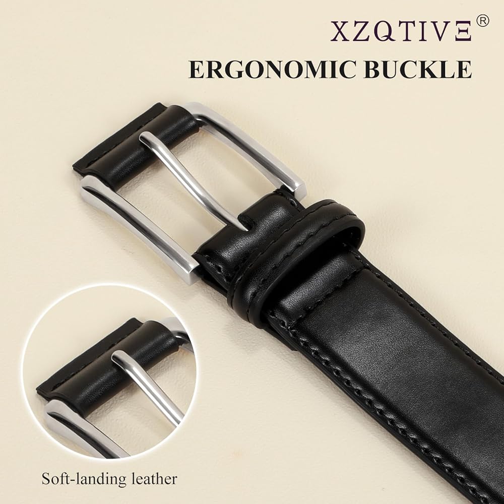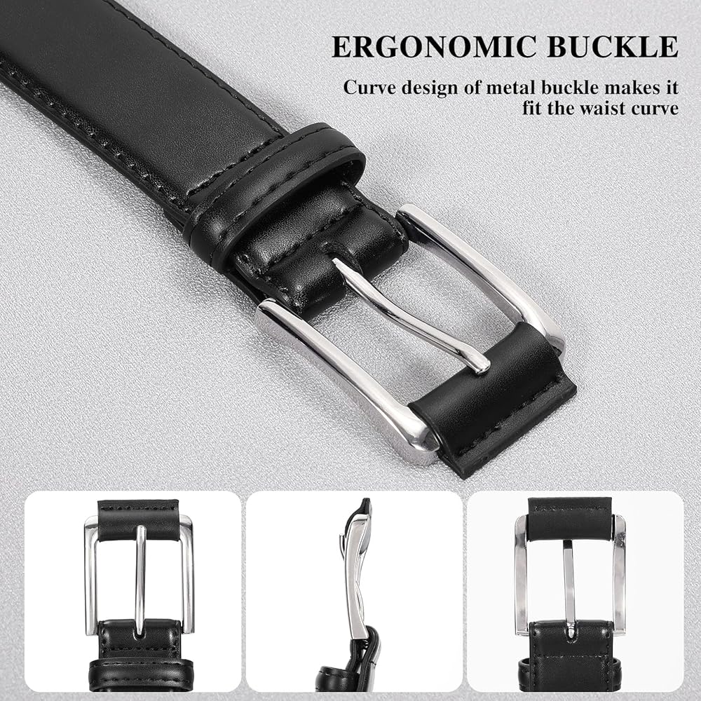 تصميم مريح: يتميز حزام الفستان الرجالي الخاص بنا بإبزيم معدني أنيق بتصميم منحني لملاءمة مثالية وخالية من التهيج. يضمن الإبزيم الخالي من النيكل المضاد للحساسية الراحة عند ارتدائه طوال اليوم، ويكمل الملابس الاحترافية والعادية بأسلوبه الخالد.