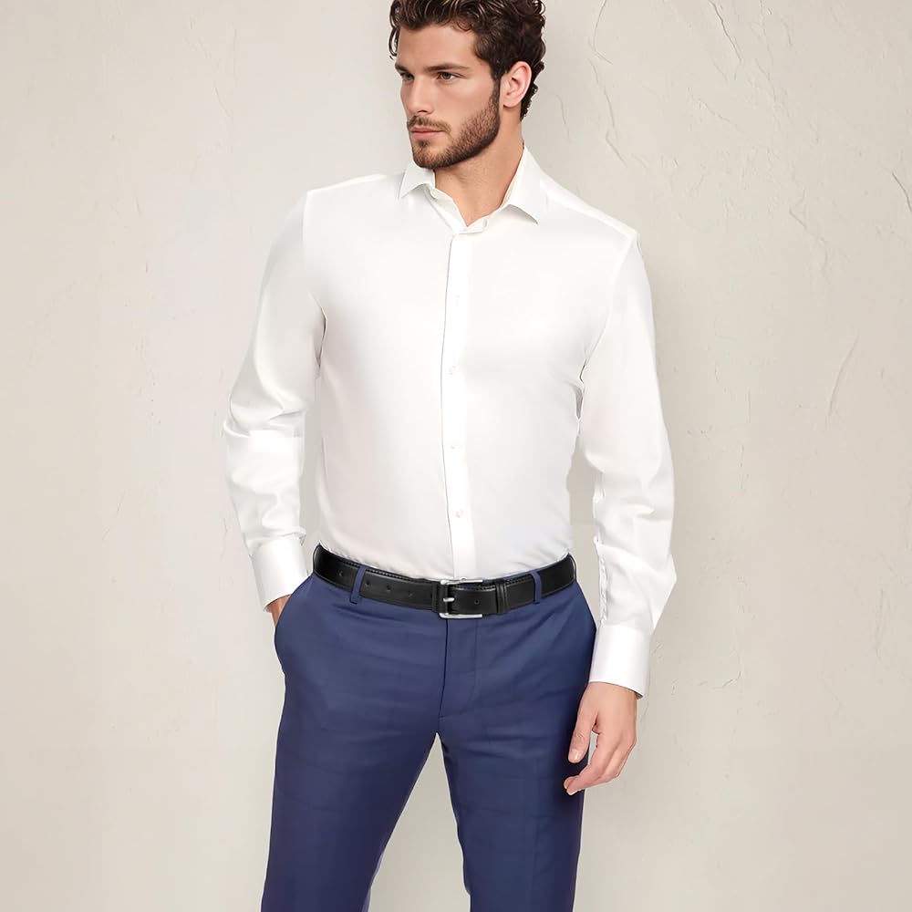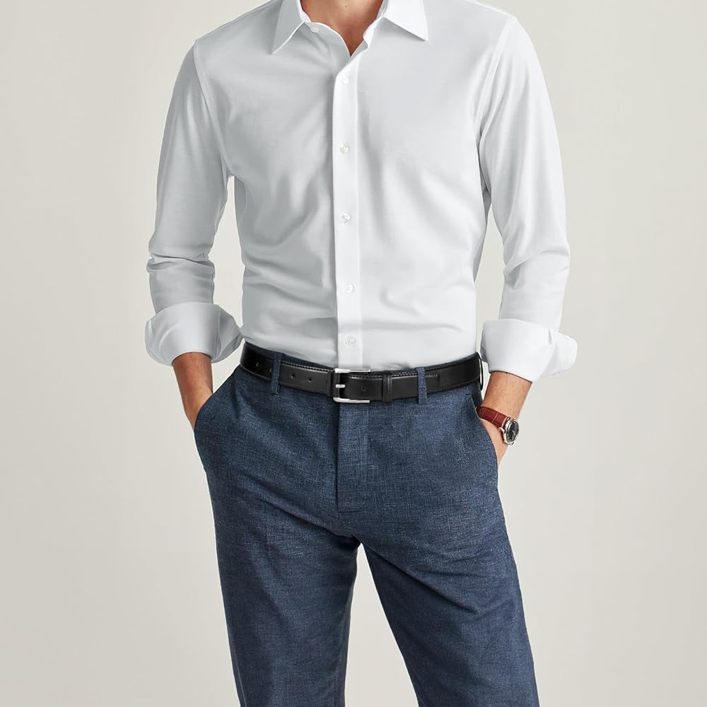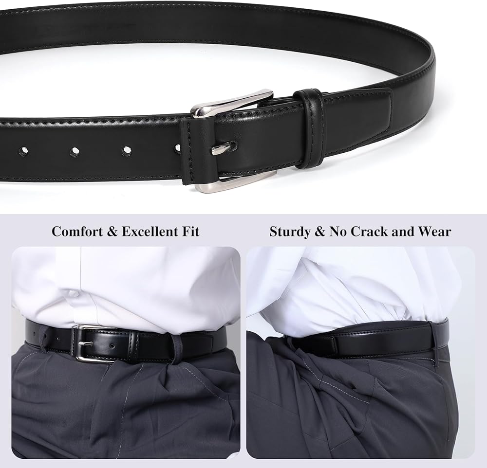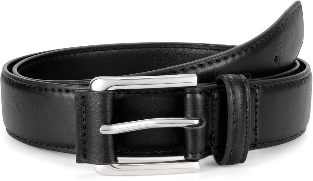 تصميم مريح: يتميز حزام الفستان الرجالي الخاص بنا بإبزيم معدني أنيق بتصميم منحني لملاءمة مثالية وخالية من التهيج. يضمن الإبزيم الخالي من النيكل المضاد للحساسية الراحة عند ارتدائه طوال اليوم، ويكمل الملابس الاحترافية والعادية بأسلوبه الخالد.