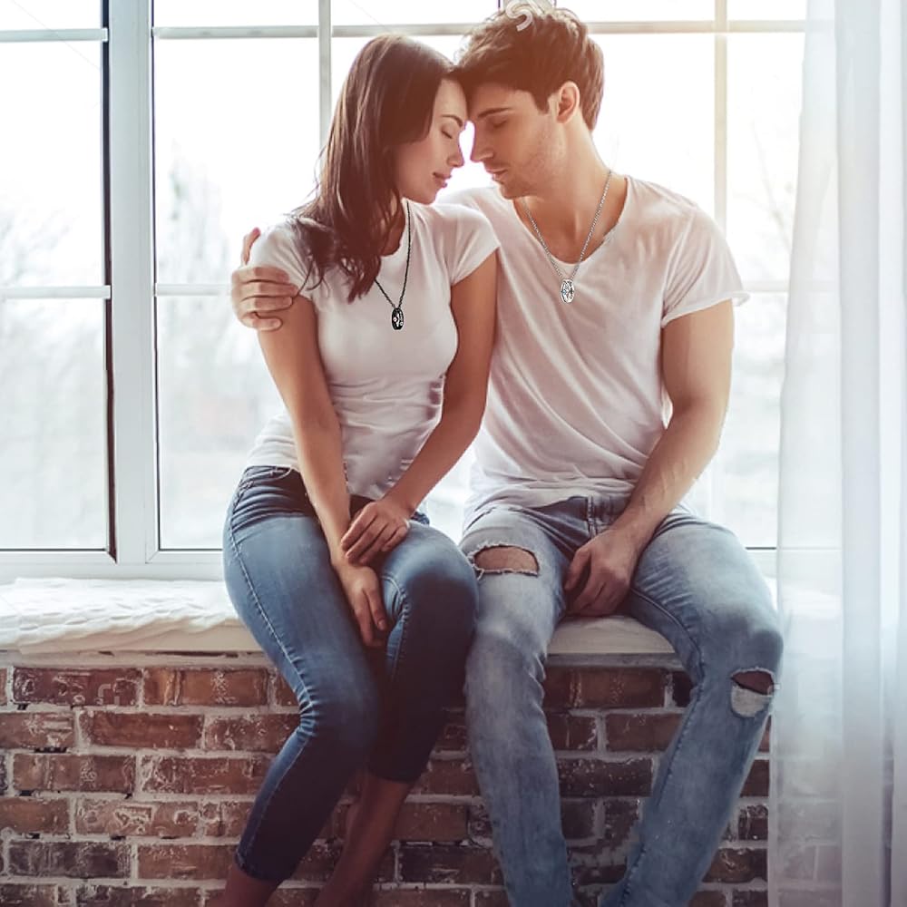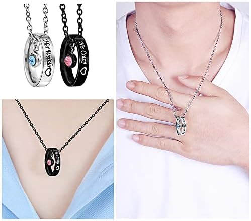 💕【Size】Chain length of the necklace is about 18 inches. Promise rings for women is 7, promise rings for men is 8