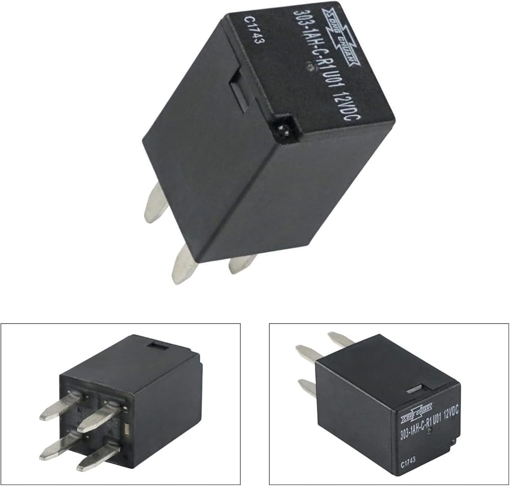 1 قطعة مرحل سيارة، غلاف بلاستيكي مقاوم للماء، مرحل متعدد الاستخدامات 12VDC، عالمي لـ 303-1AH-C-R1-U01 مرحل رباعي الأرجل (أسود)