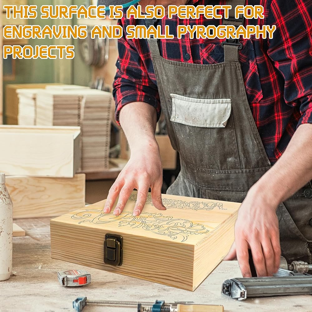 صندوق خشبي غير مكتمل للاستخدام بنفسك - هذا السطح مثالي أيضًا للنقش والمشروعات البيروغرافية الصغيرة.